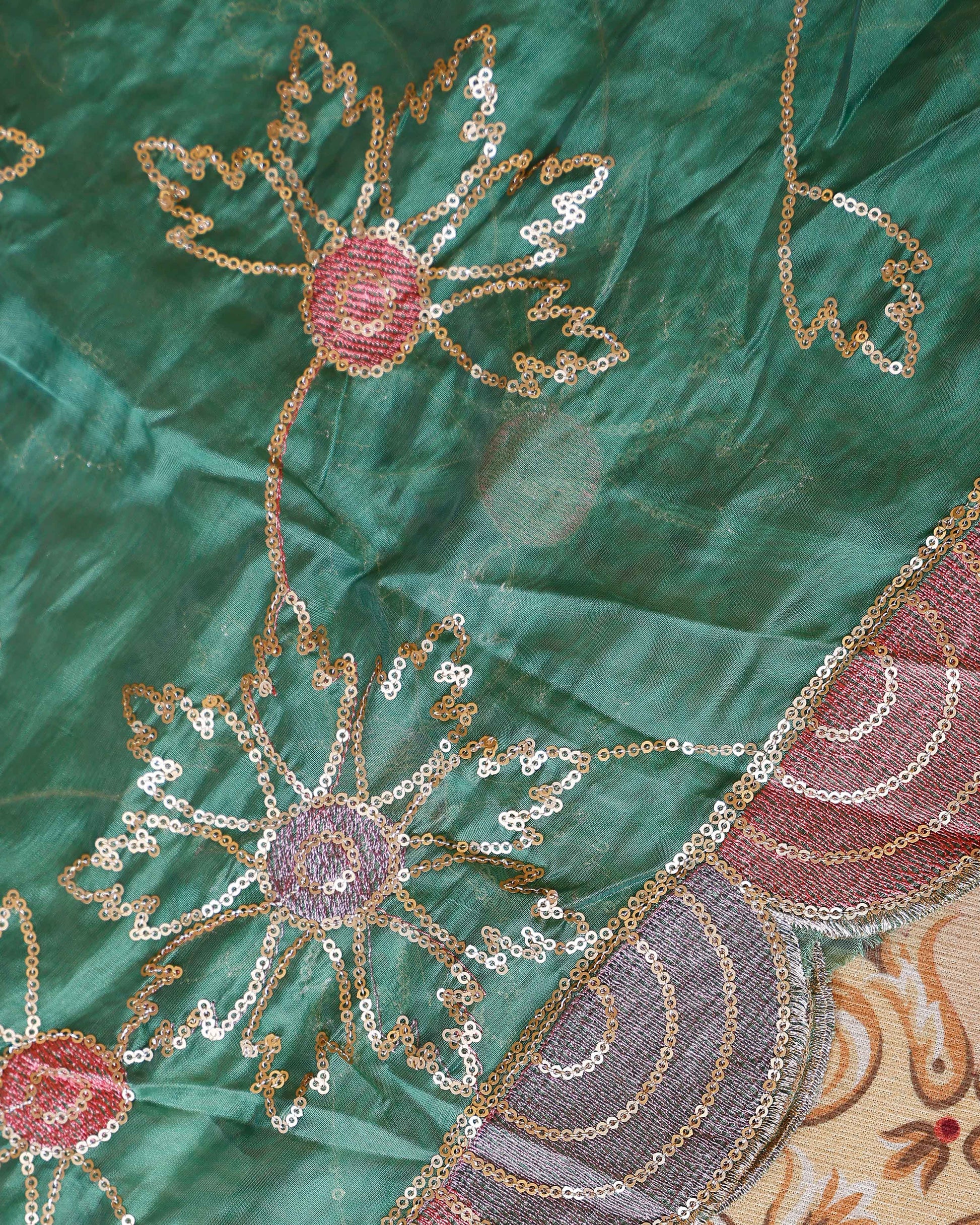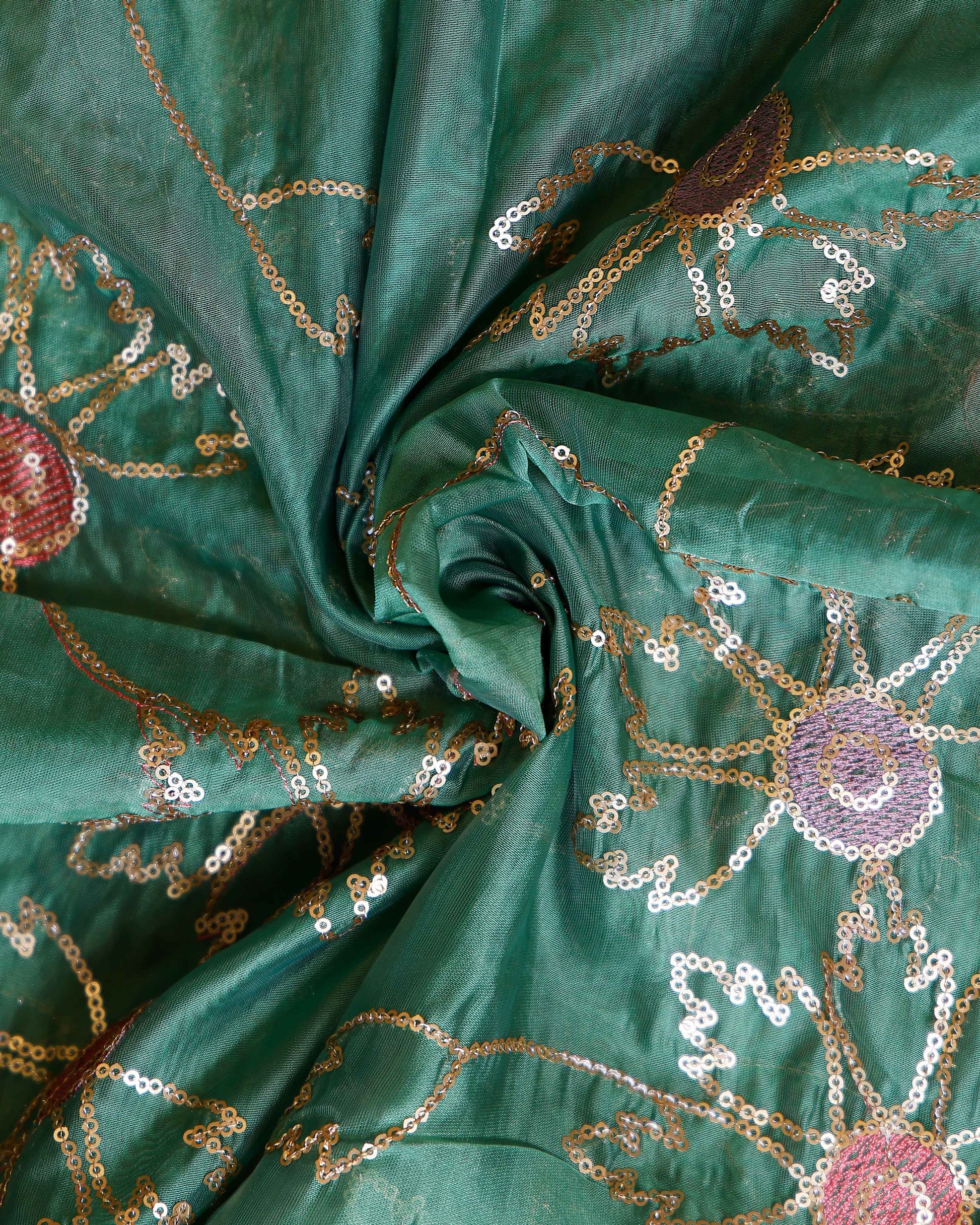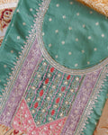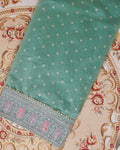 Women's Embroidered Floral Motif Salwar Suit Material with Dupatta - Green