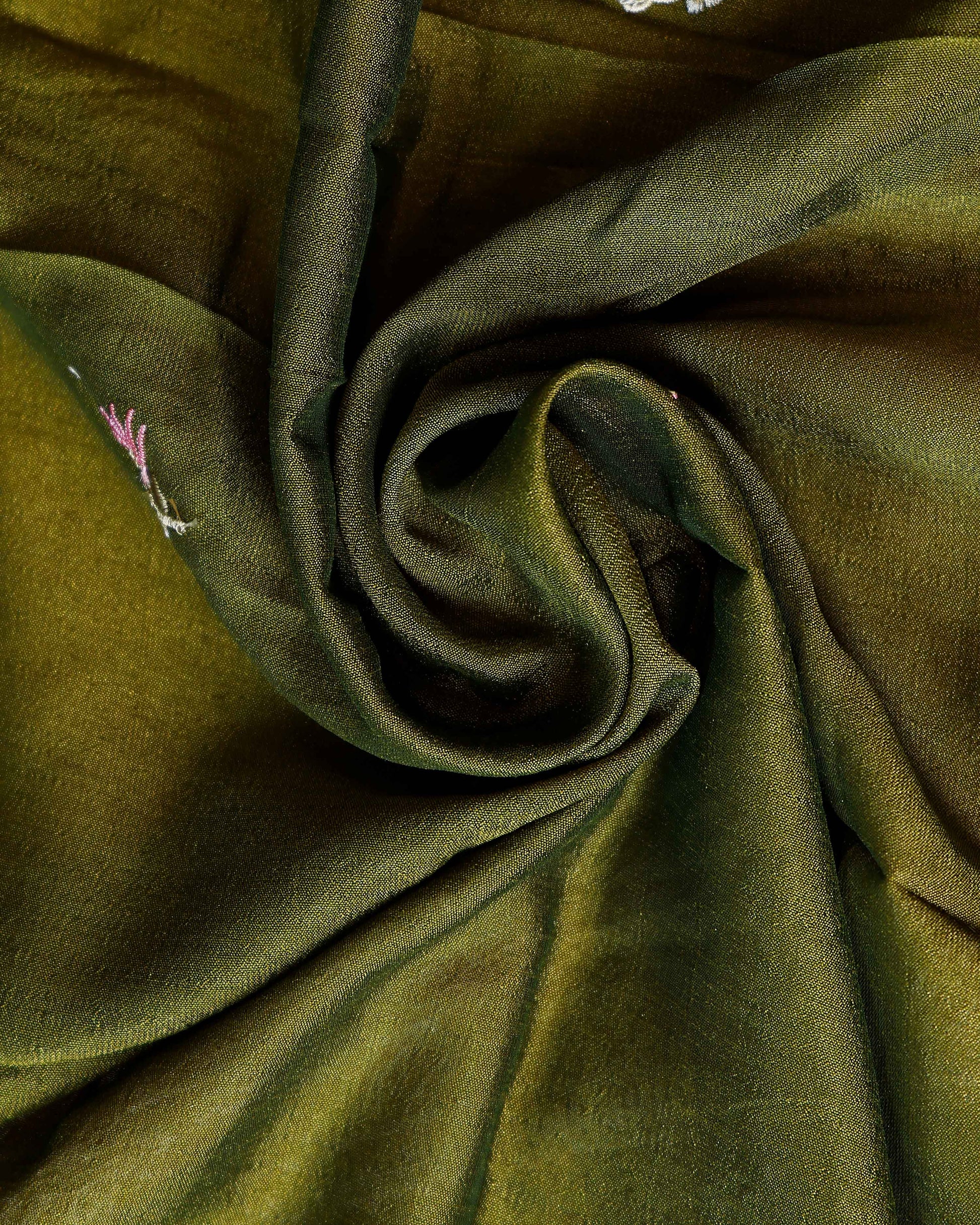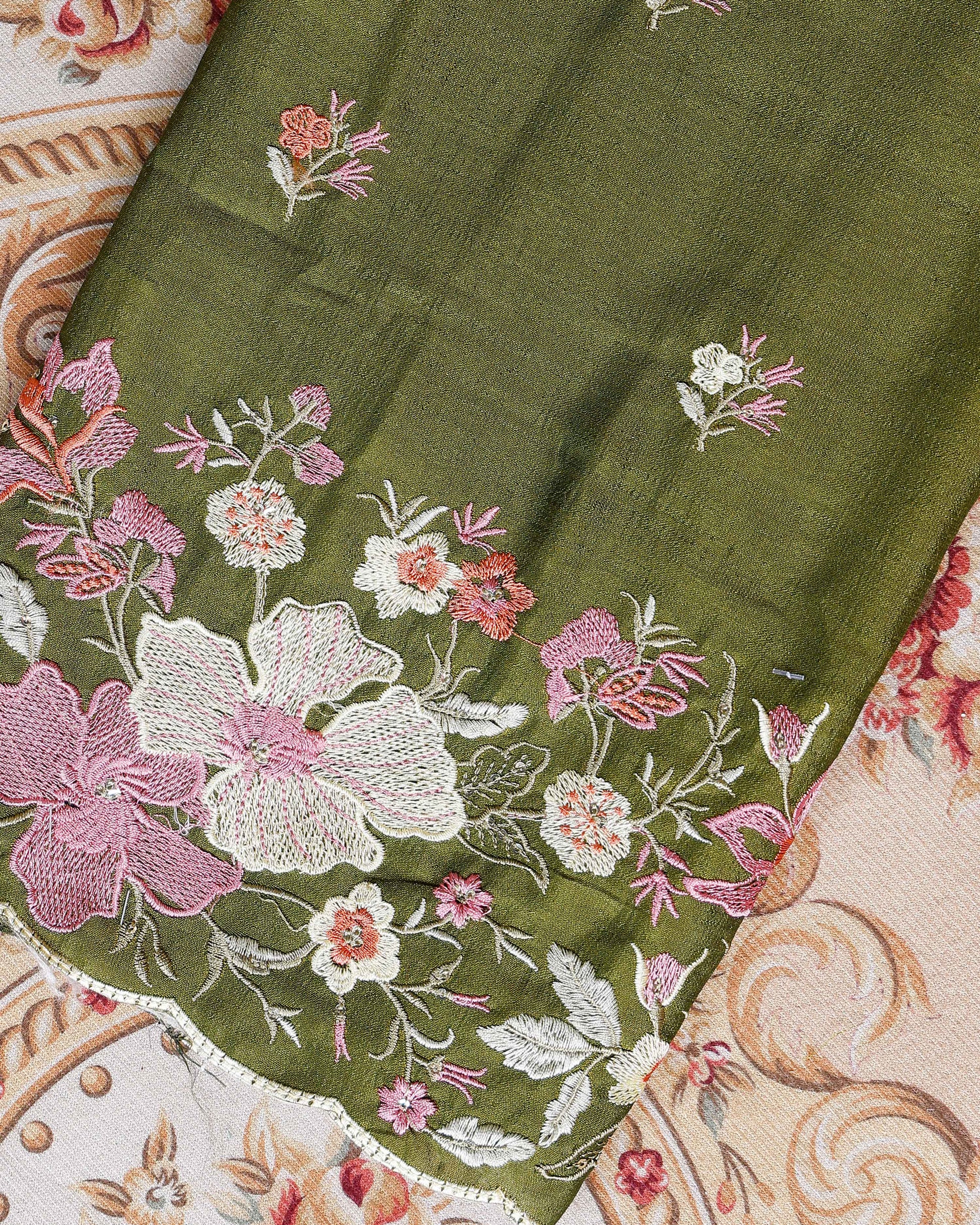 Women's Designer Unstitched Salwar Material with Intricate Floral Work - Green
