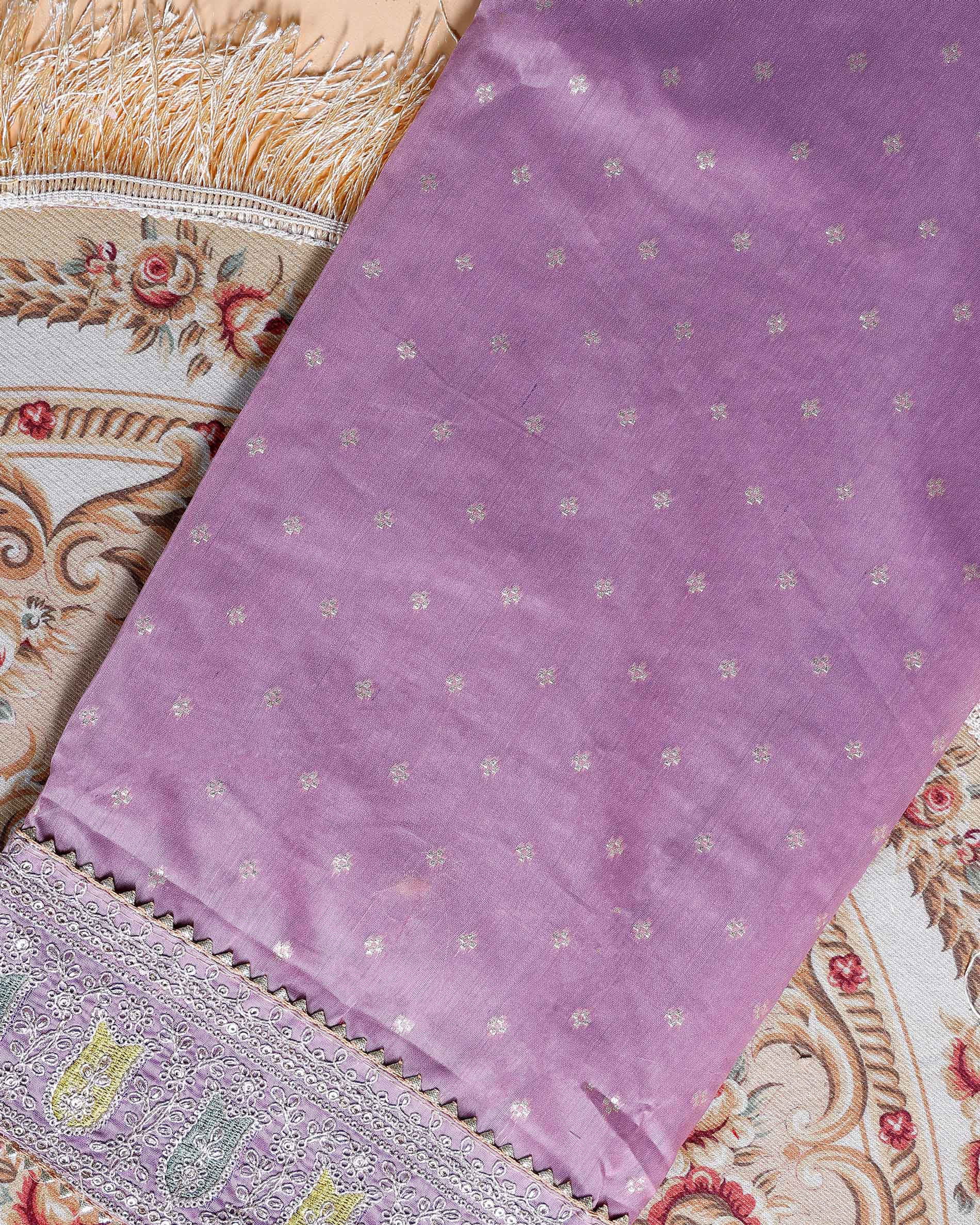 Women's Embroidered Floral Motif Salwar Suit Material with Dupatta - Lavender