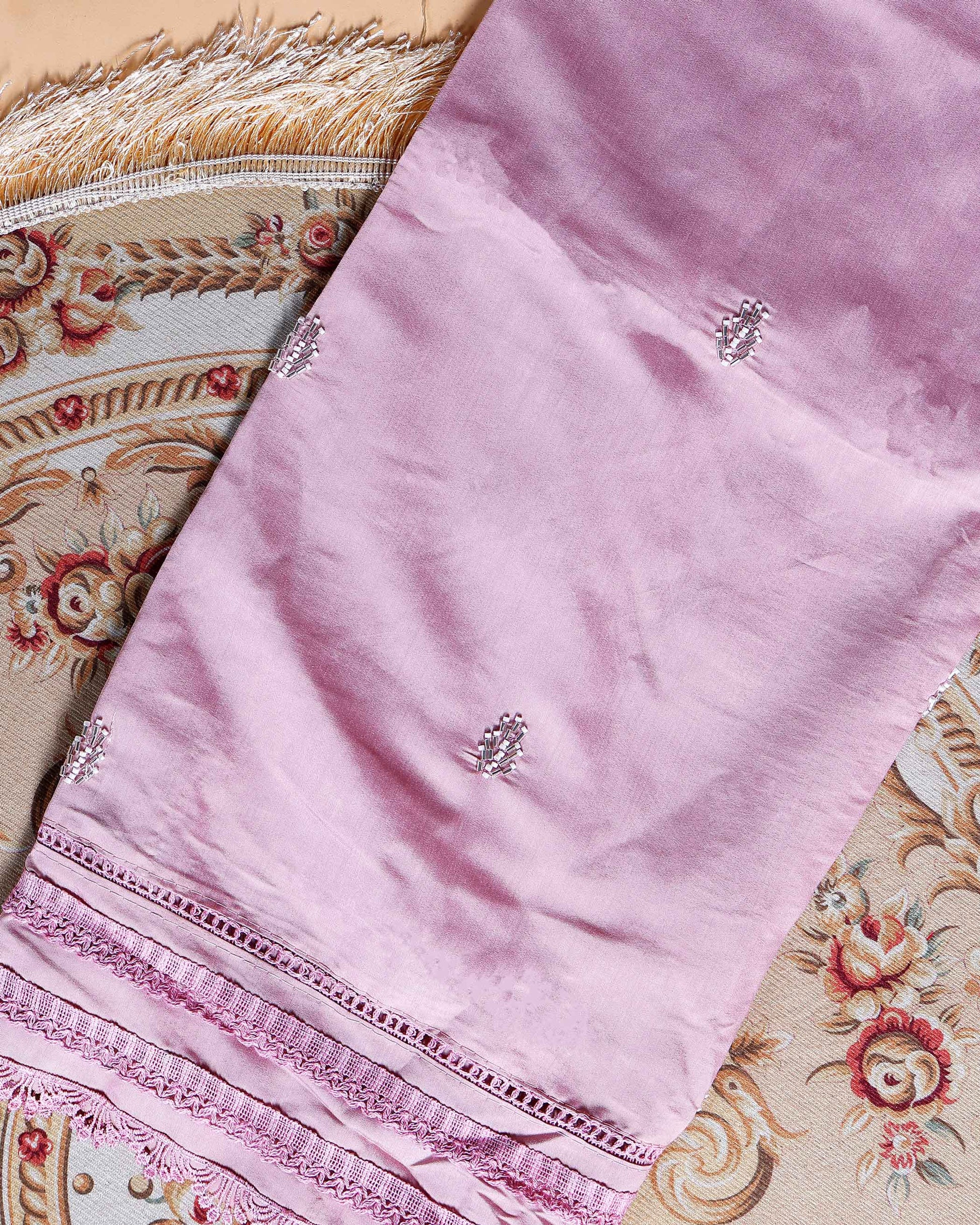 - Elegant Light Purple Art Silk Unstitched Salwar Suit Material with Intricate Thread Embroidery.