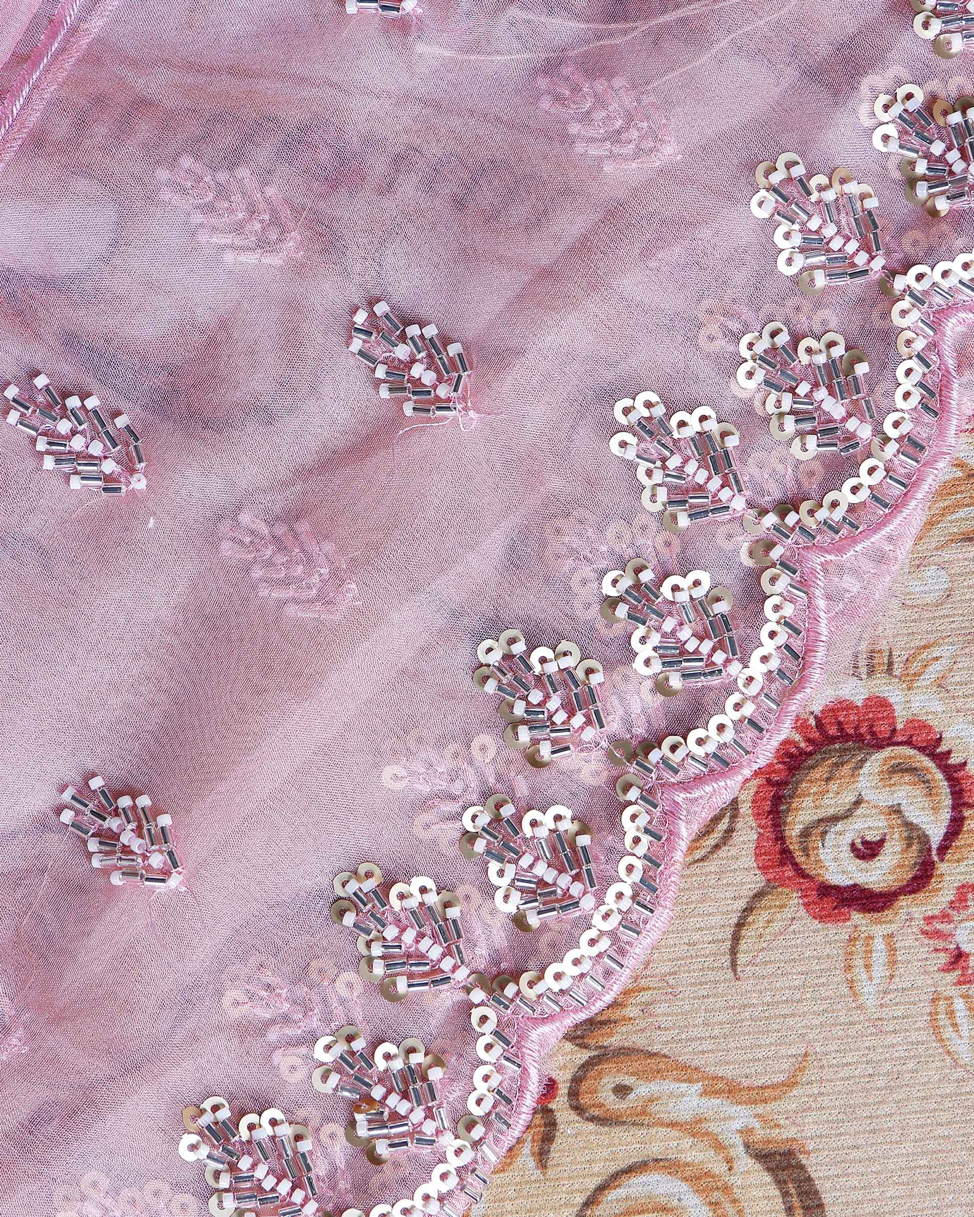 Women's Unstitched Salwar Material Set with Intricate Embroidered Neckline and Lightweight Dupatta - Light Purple