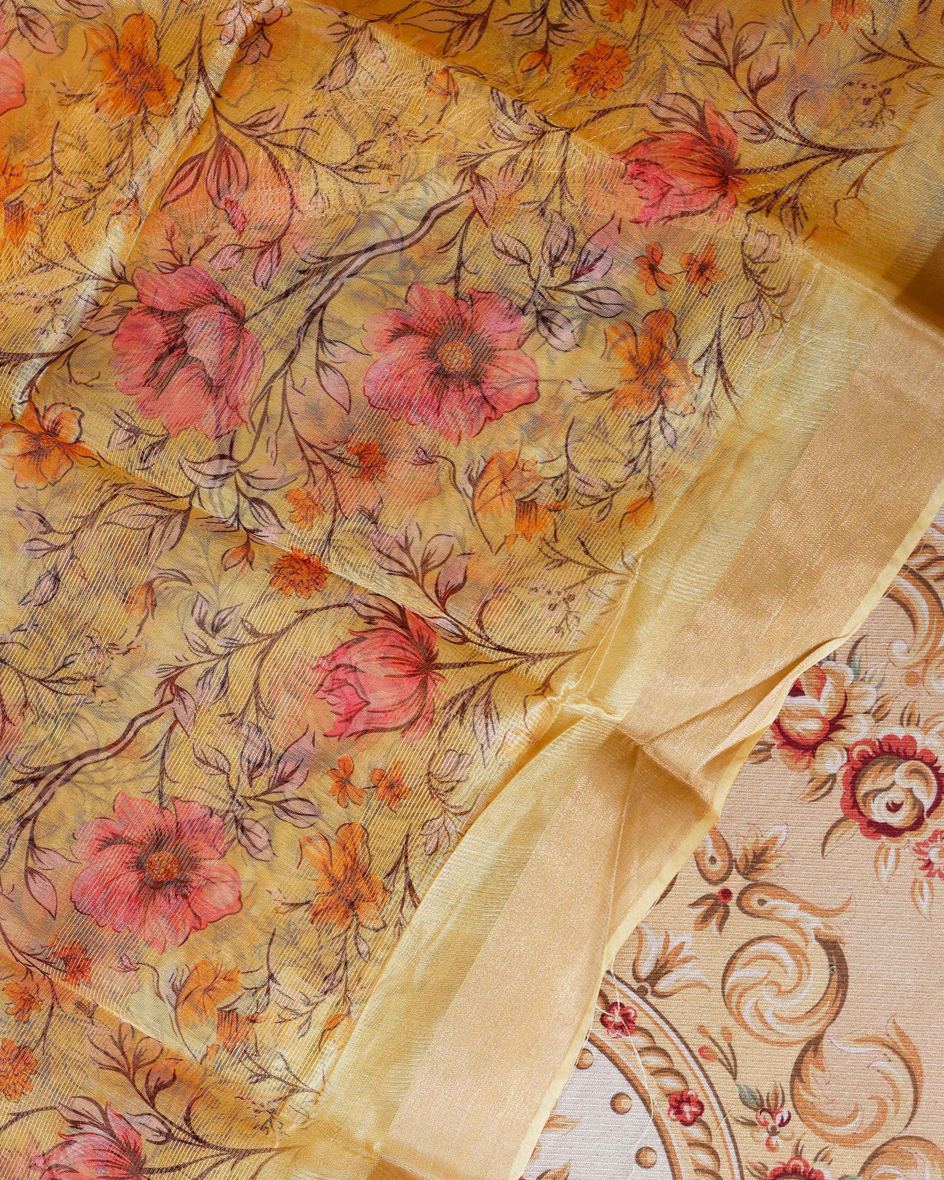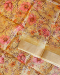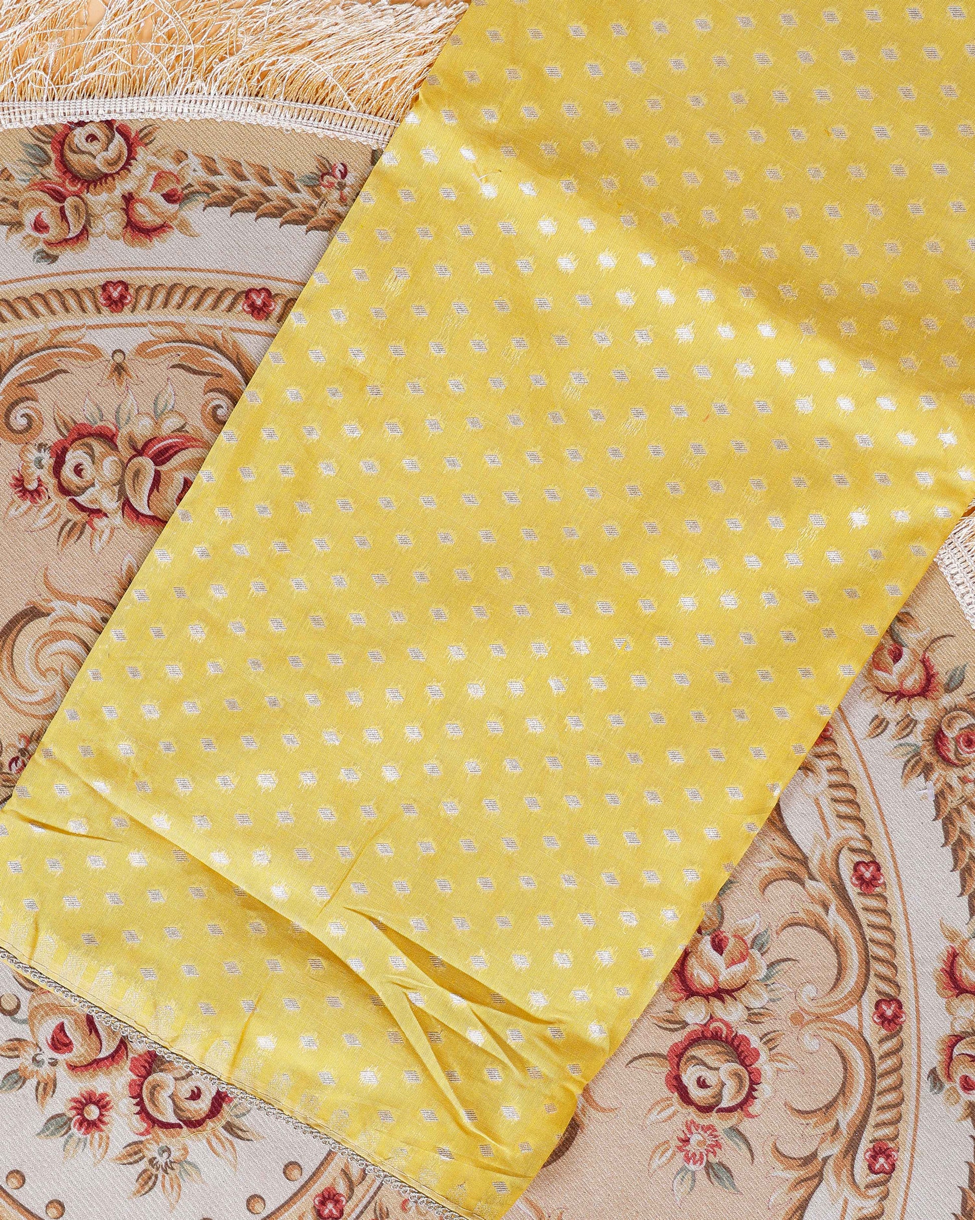 Women's Unstitched Art Silk Salwar Suit Material with Self-Design & Embroidered Neckline - Yellow