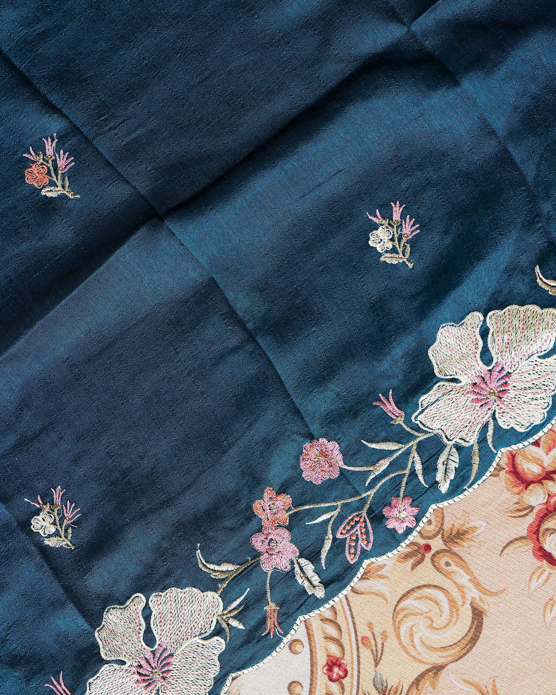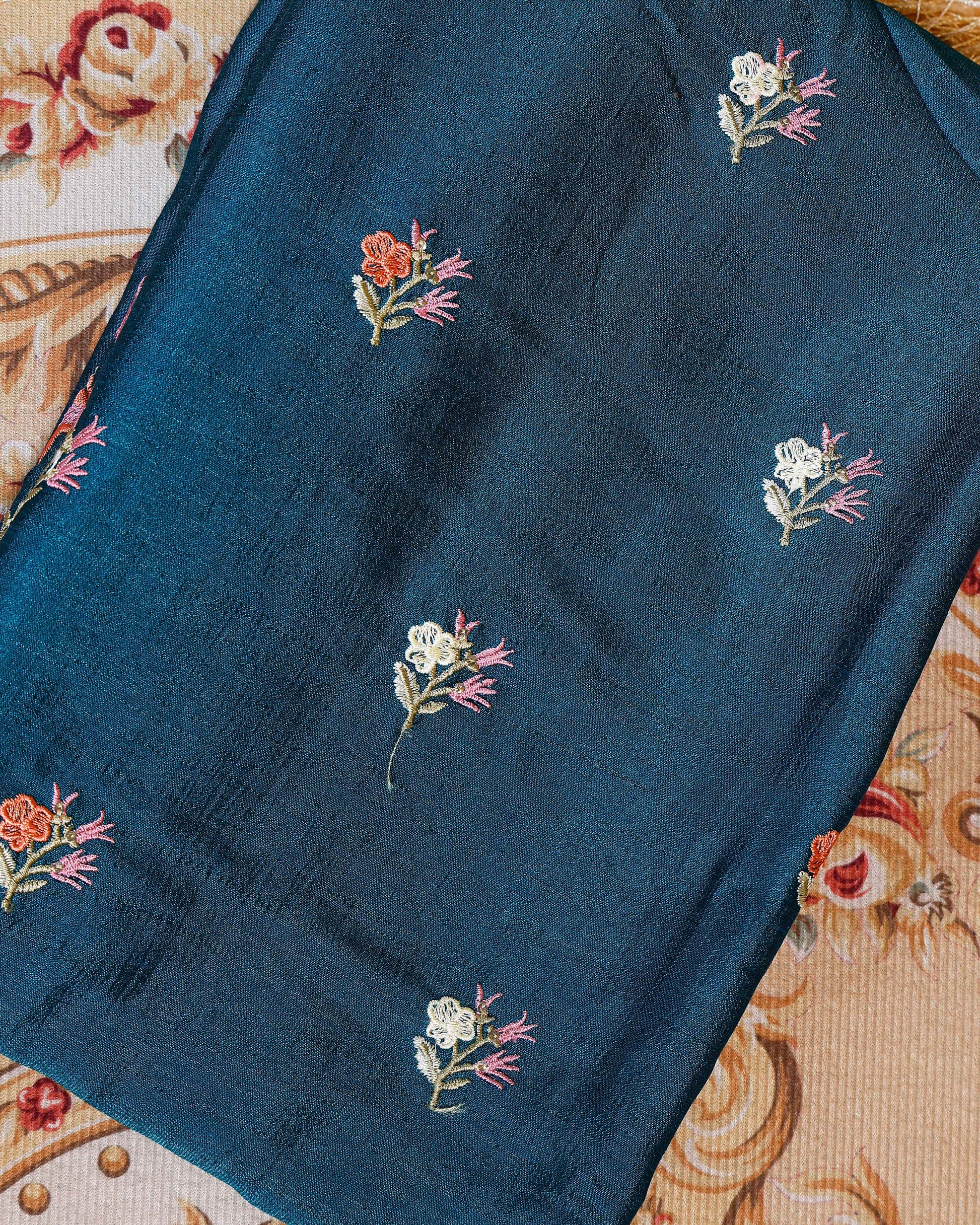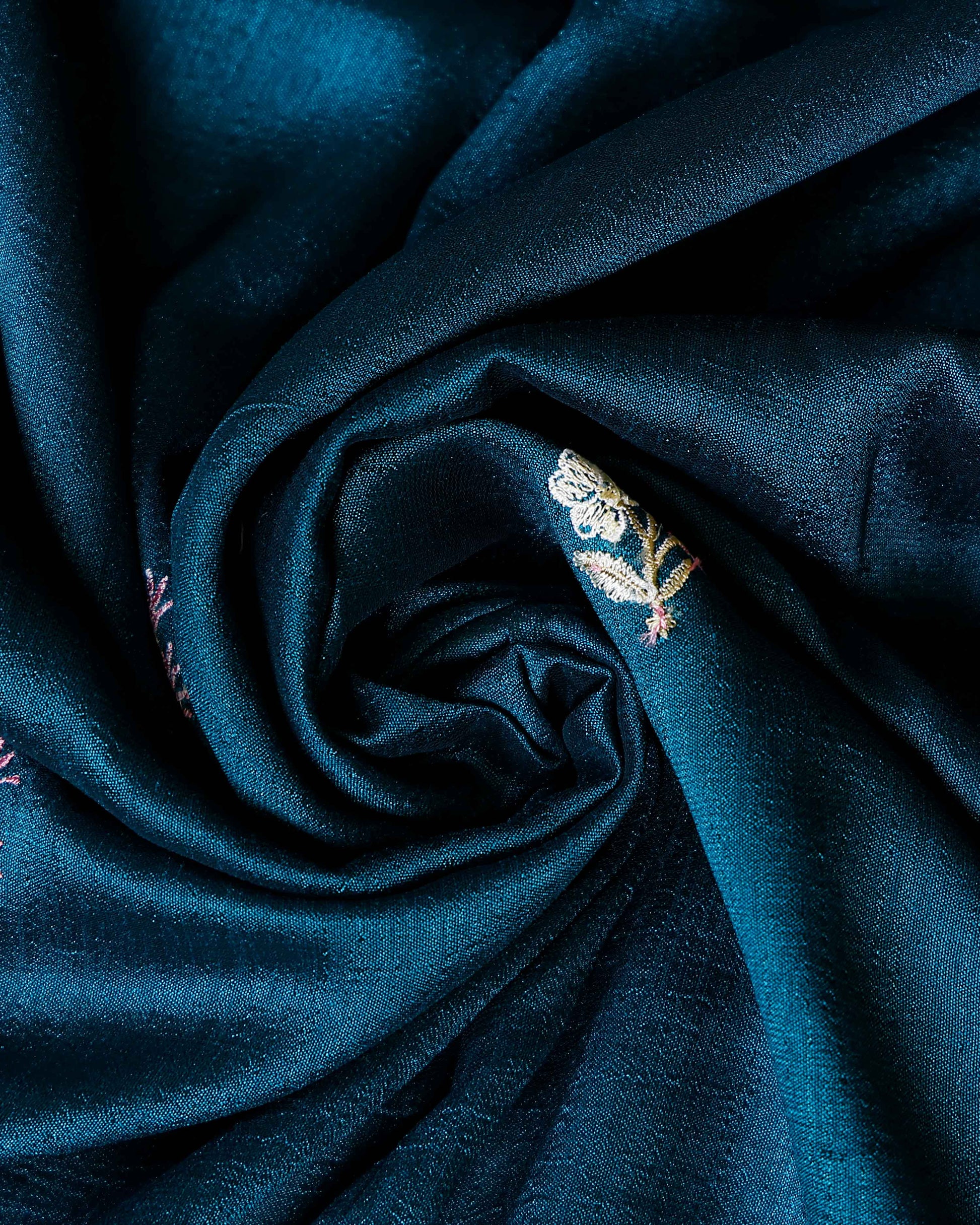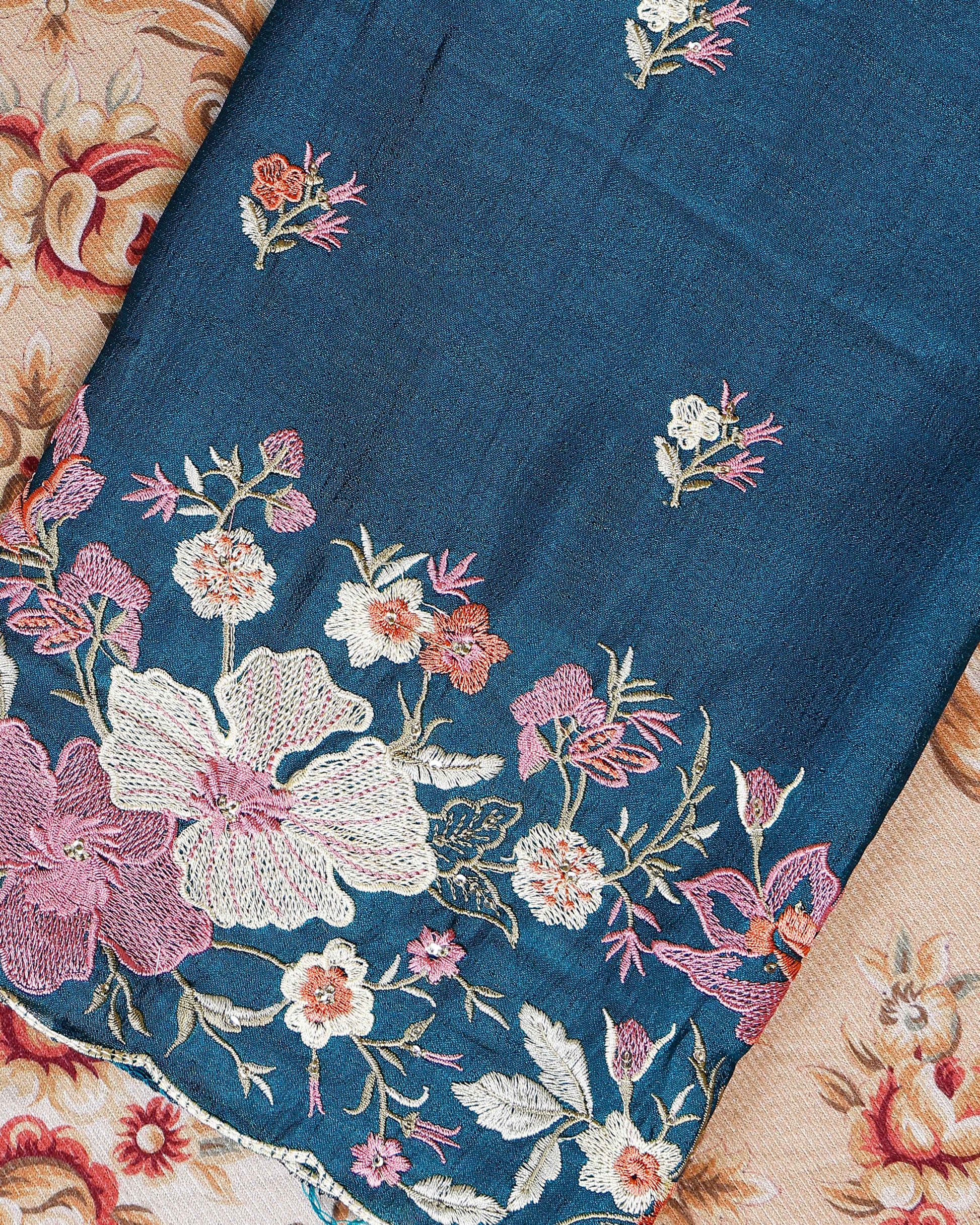 Women's Designer Unstitched Salwar Material with Intricate Floral Work - Teal