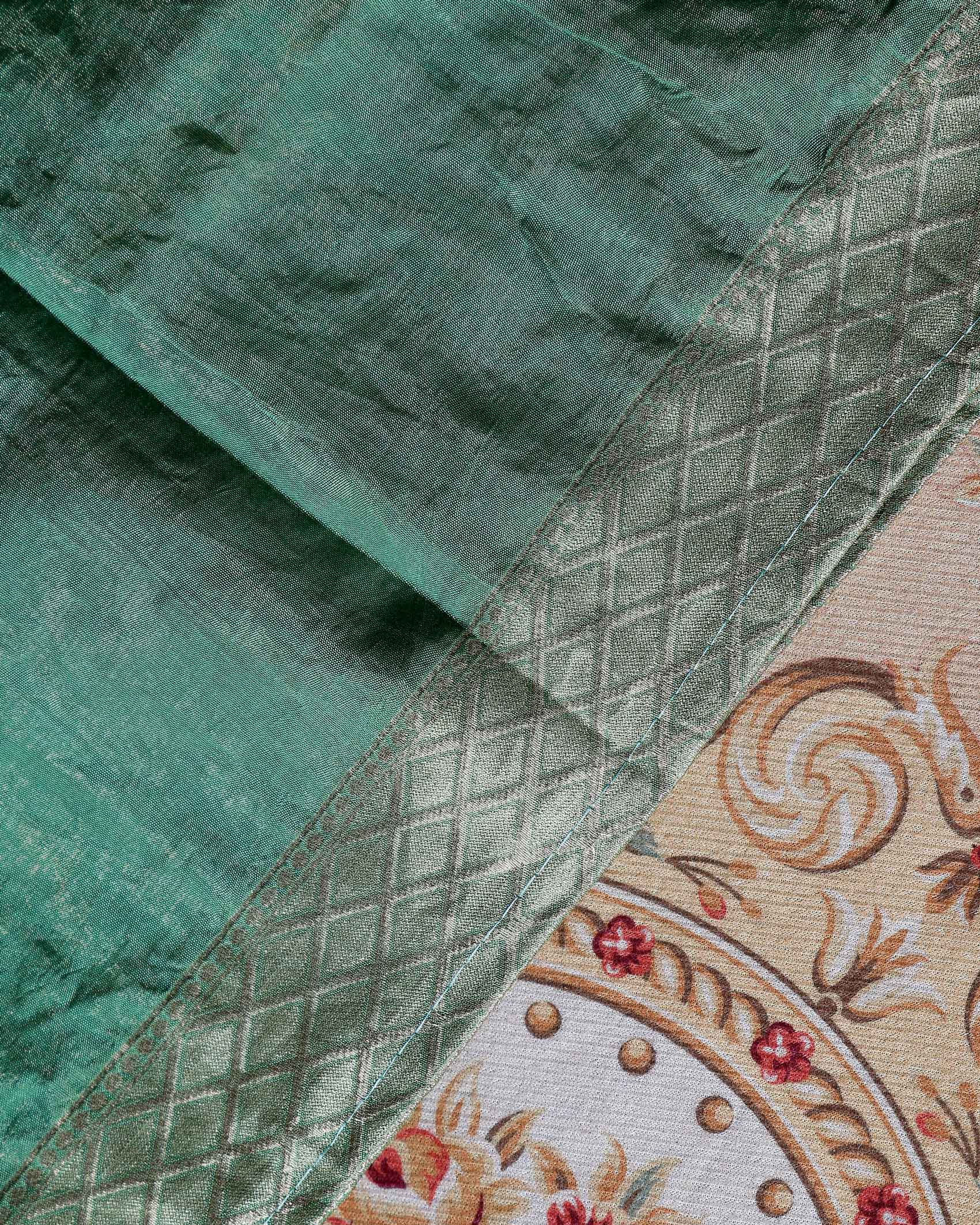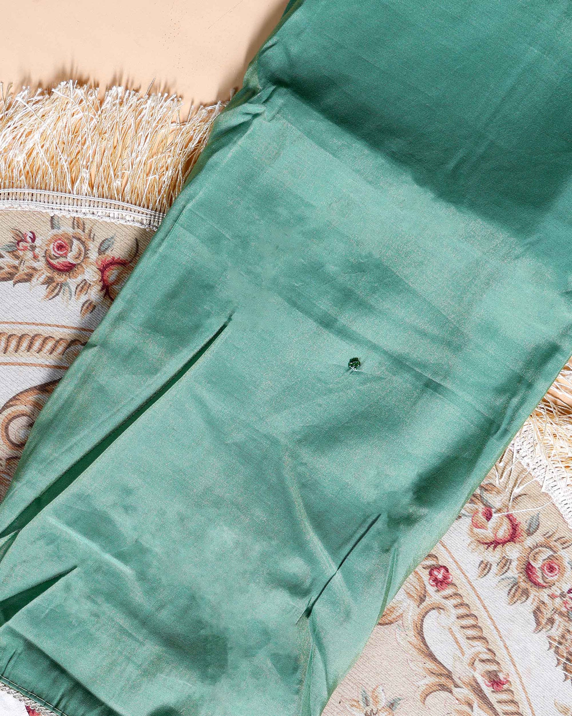 - Elegant green unstitched Art Silk material delicate neck embroidery, perfect for a sophisticated look.