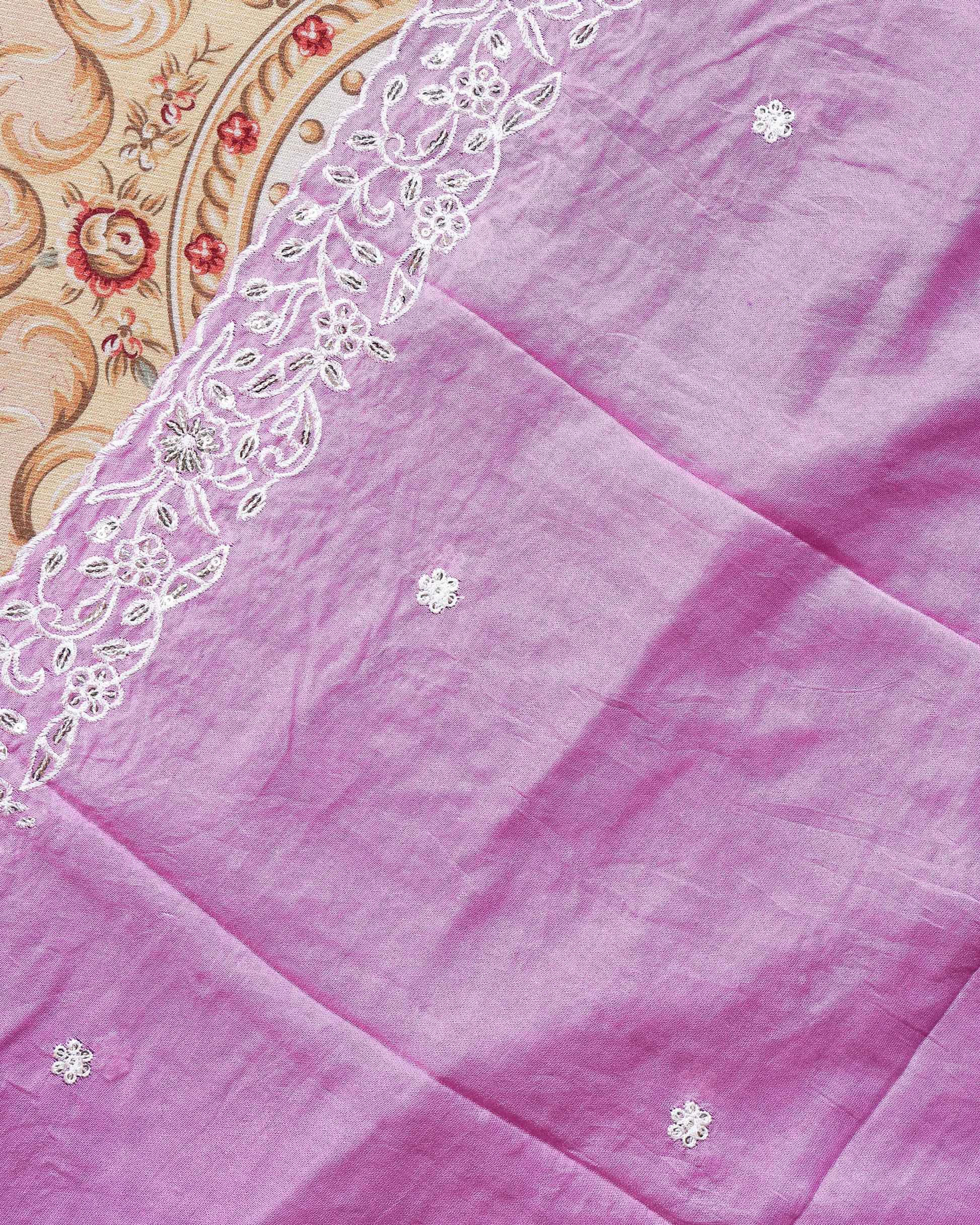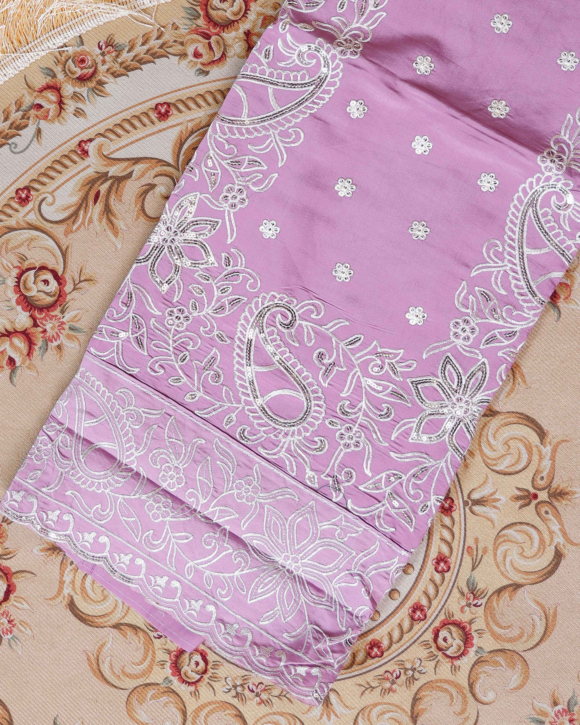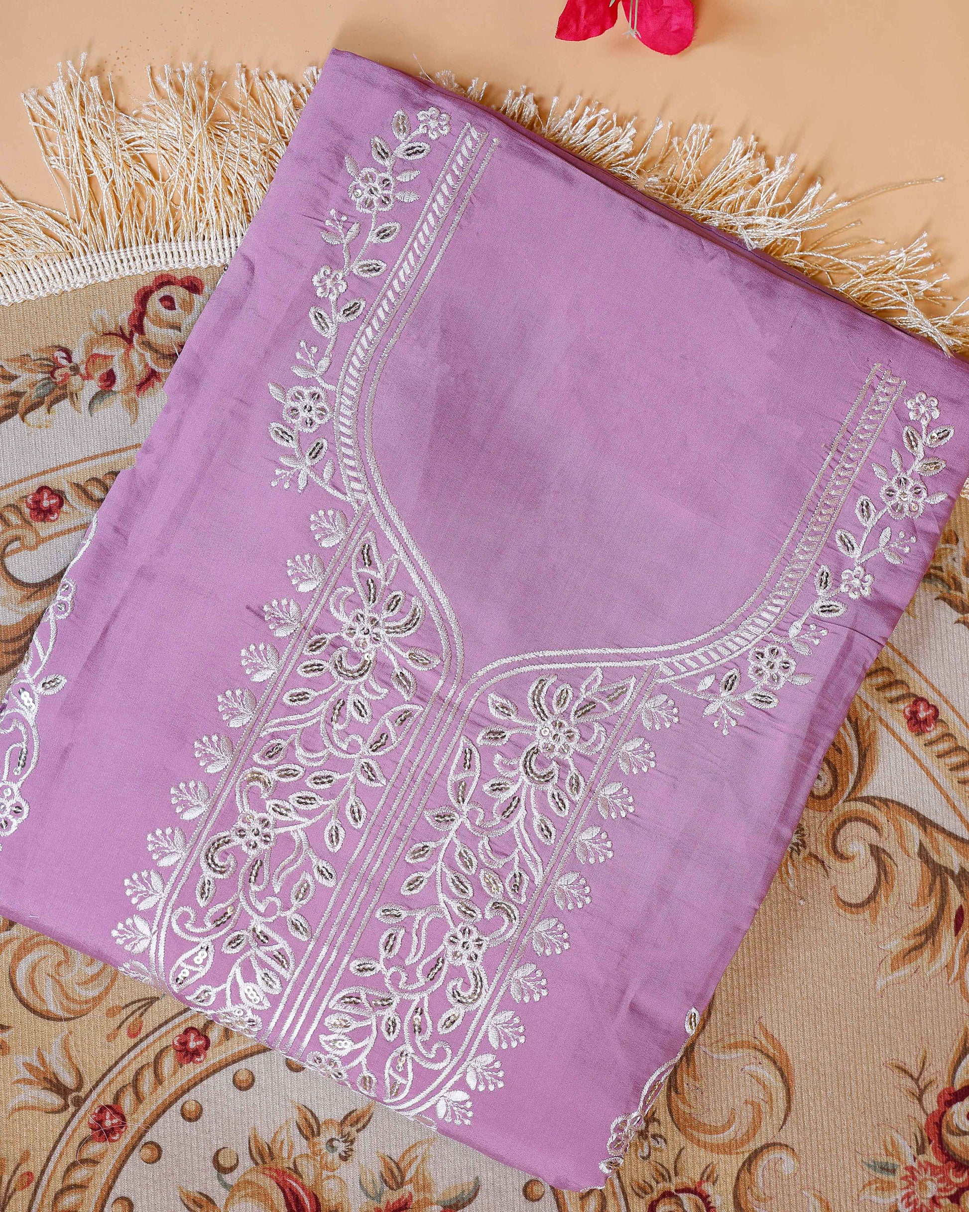 Women's Elegant Unstitched Embroidered Salwar Suit Material with Dupatta - Lavender