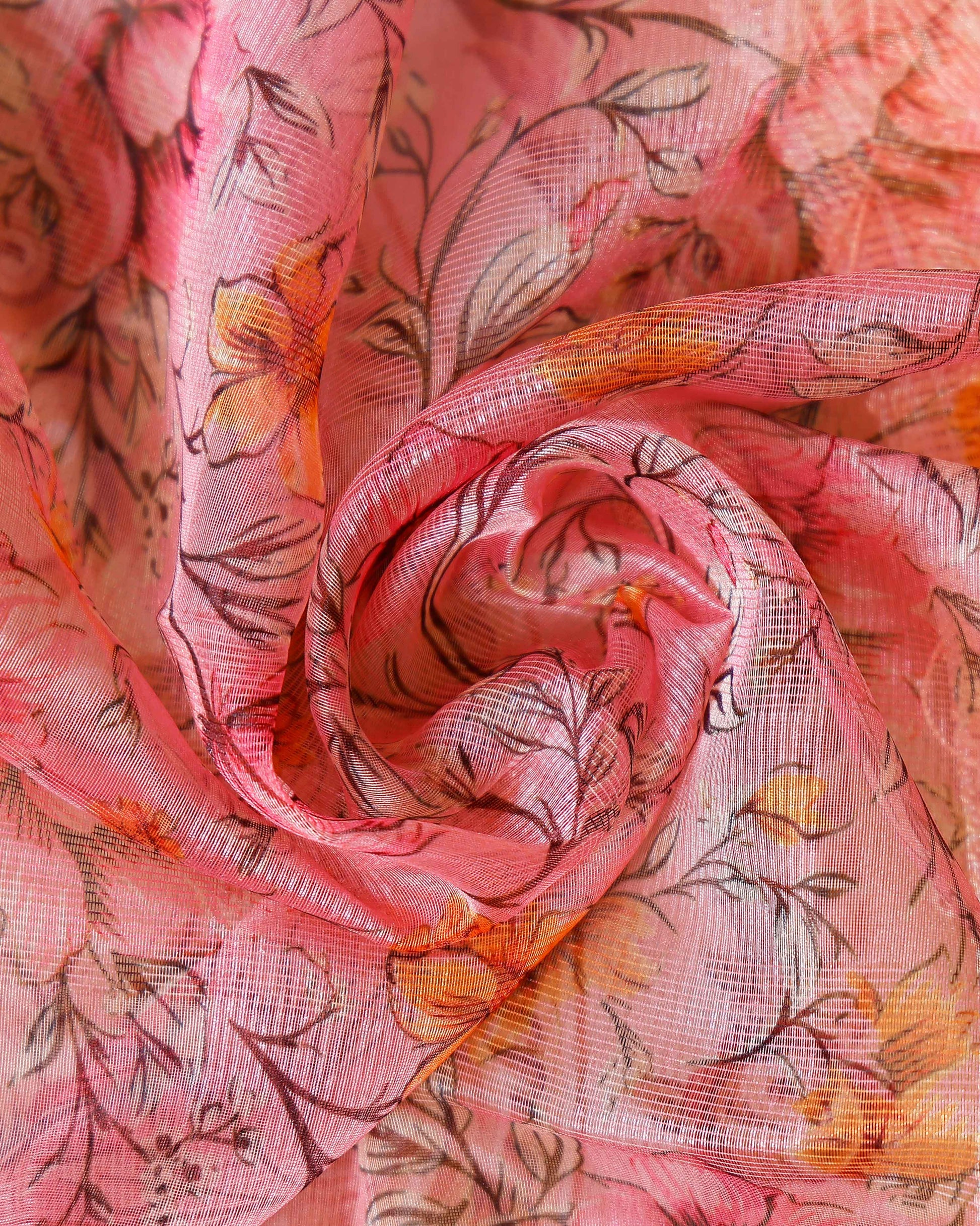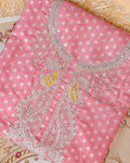 Women's Unstitched Art Silk Salwar Suit Material with Self-Design & Embroidered Neckline - Pink