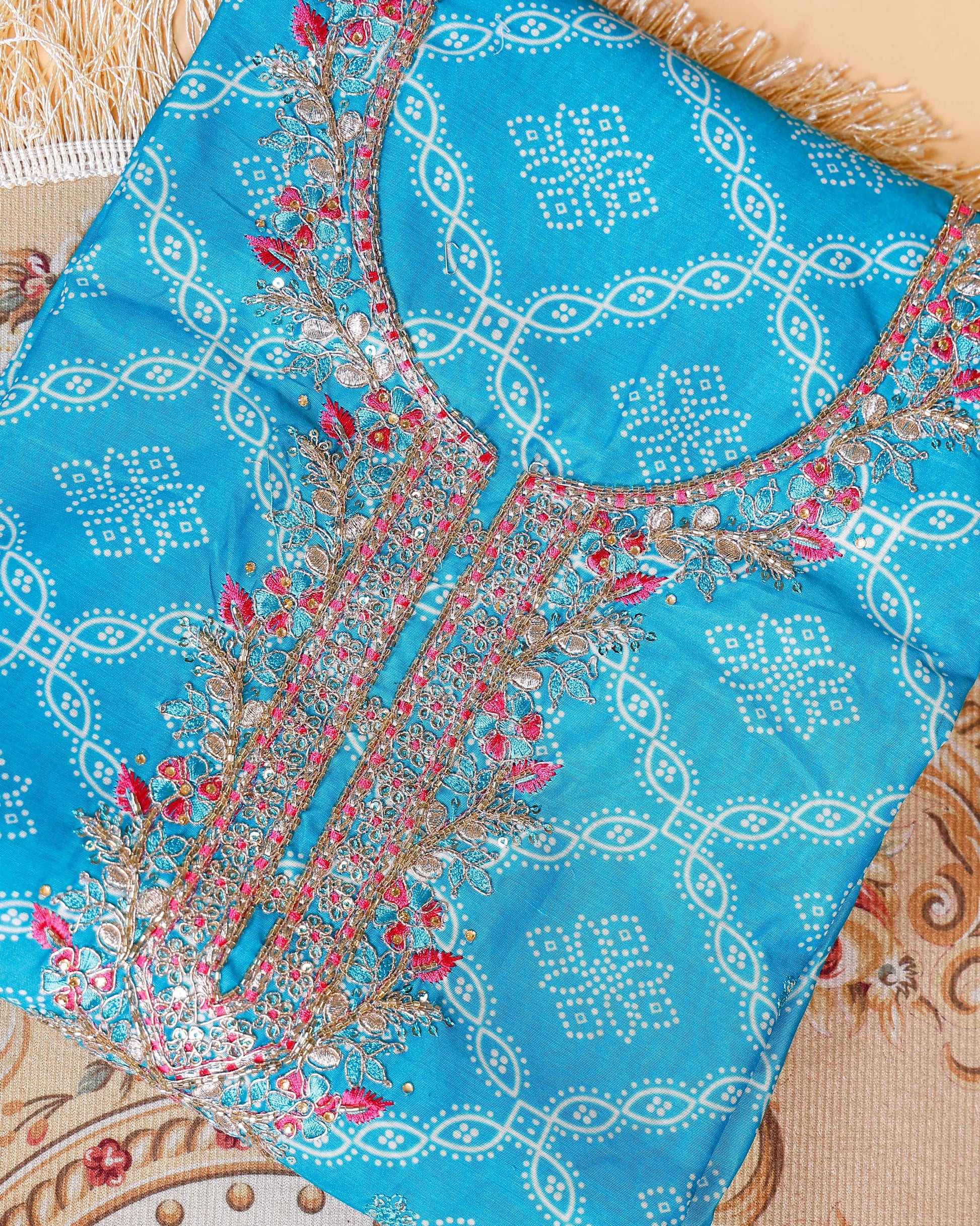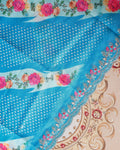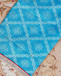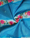 Women's Embroidered Neckline & Printed Unstitched Salwar Material with Coordinated Dupatta - Blue
