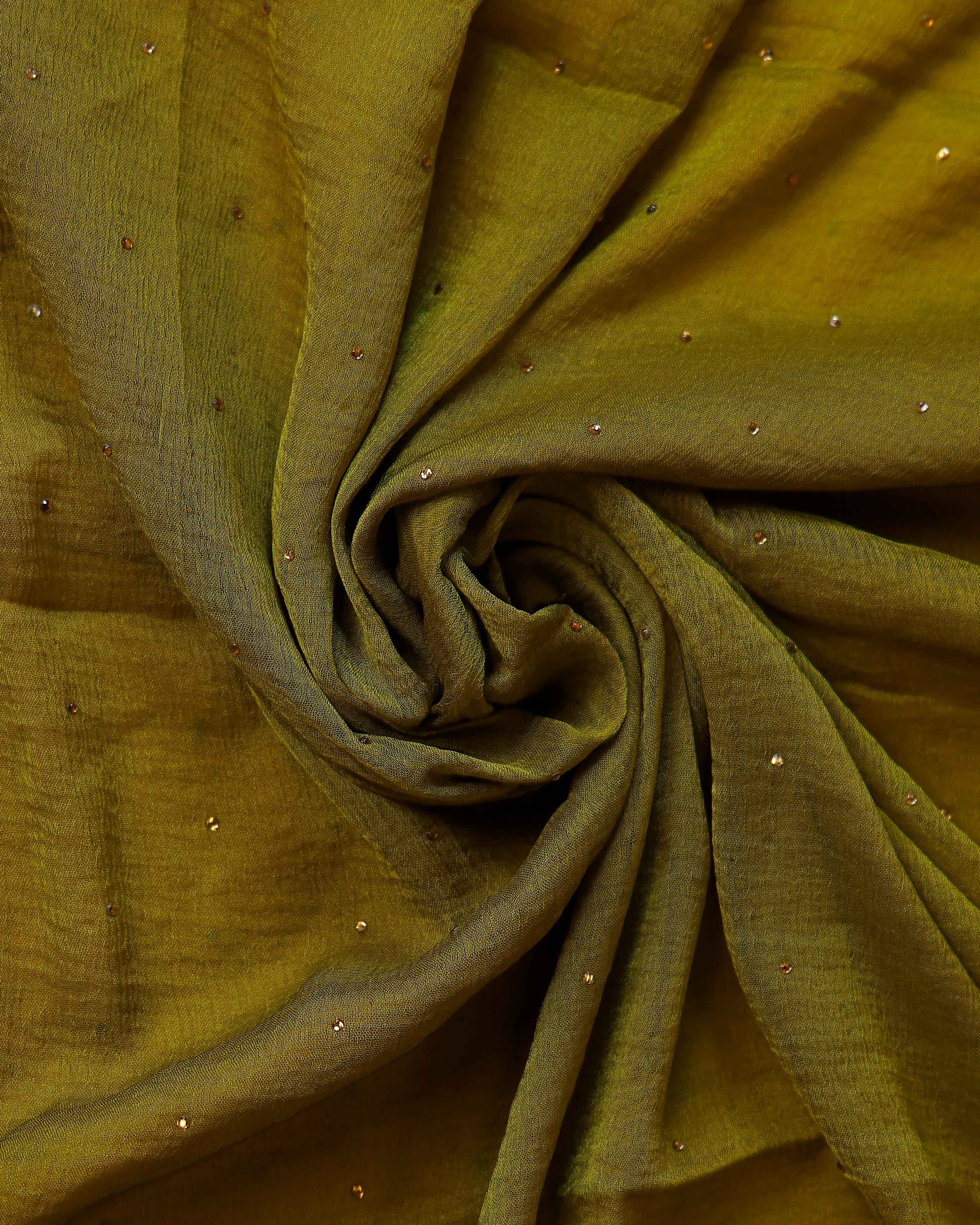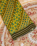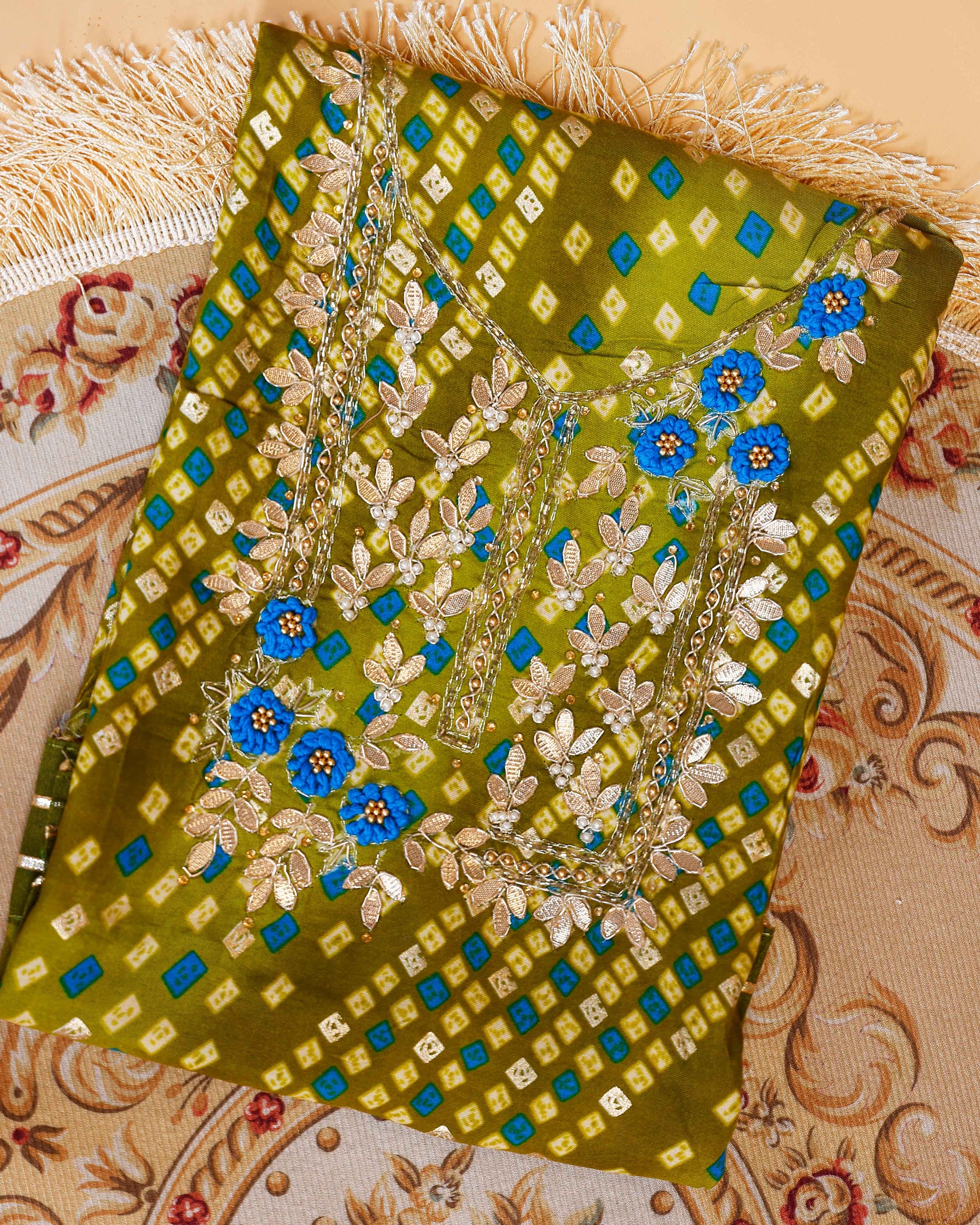 Embroidered Bandhani Print Salwar Suit Material with Zari and Floral Embellishments - Green