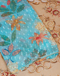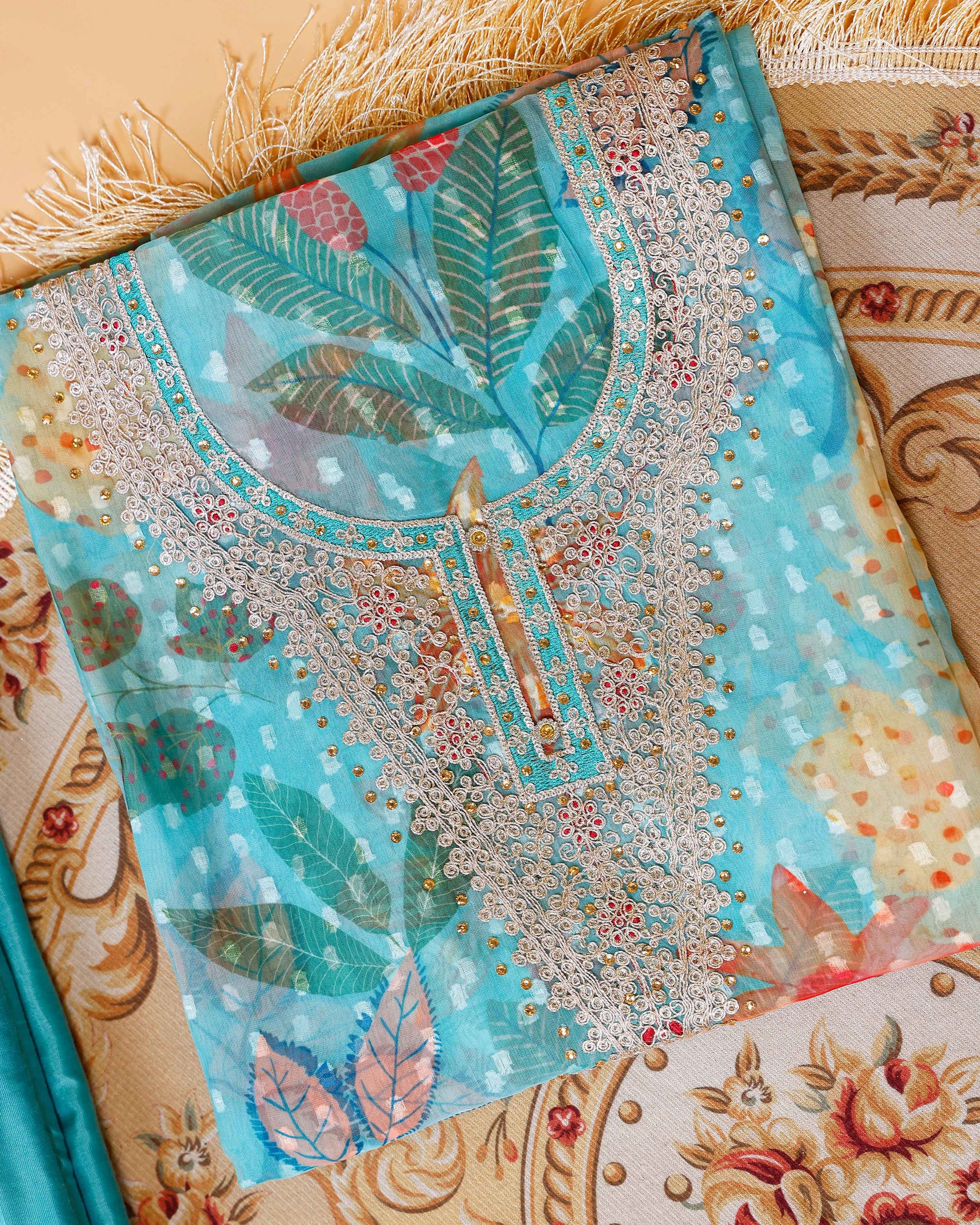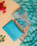Women's Elegant Floral & Paisley Print Salwar Suit Material with Intricate Neck Embroidery - Teal