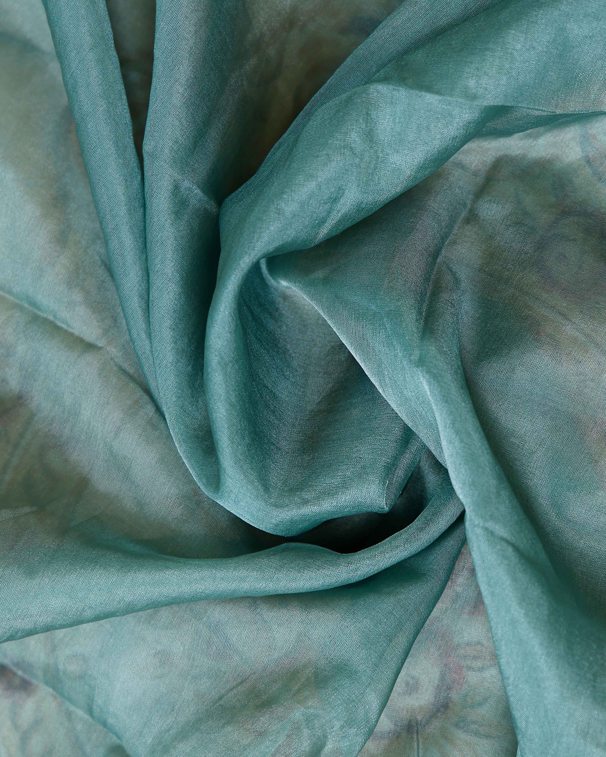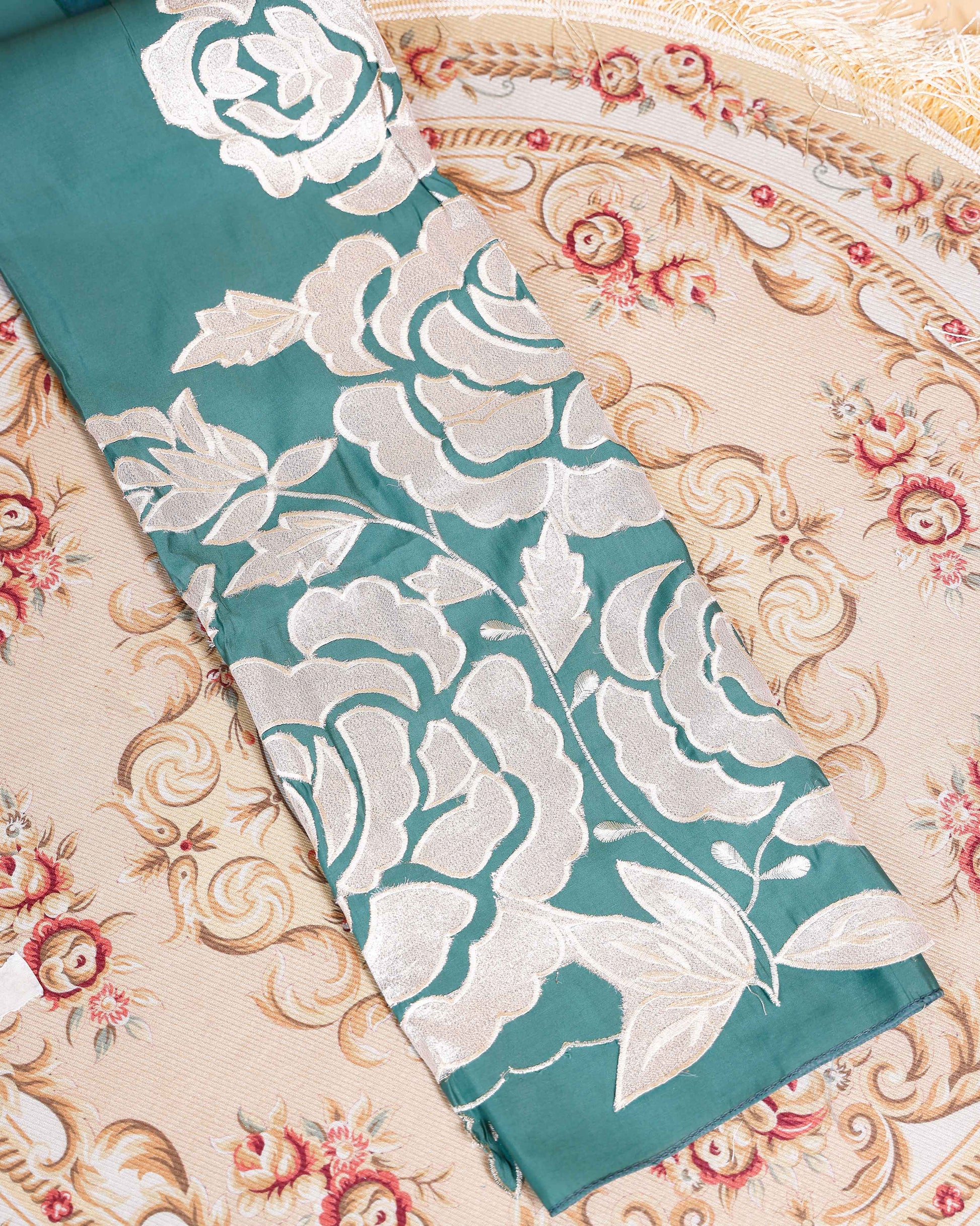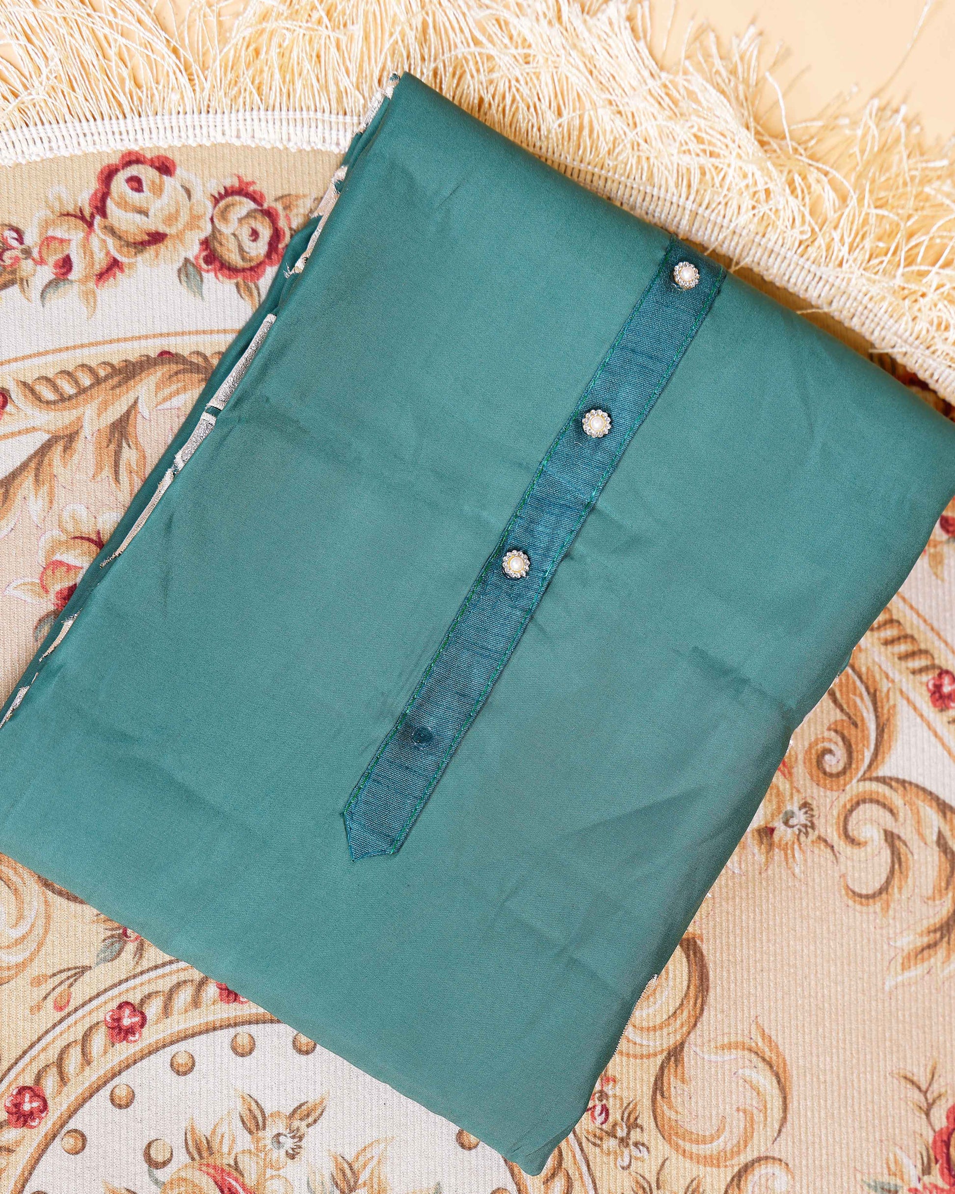 Women's Elegant Unstitched Salwar Suit Material with Embellished Neckline & Printed Dupatta - Green
