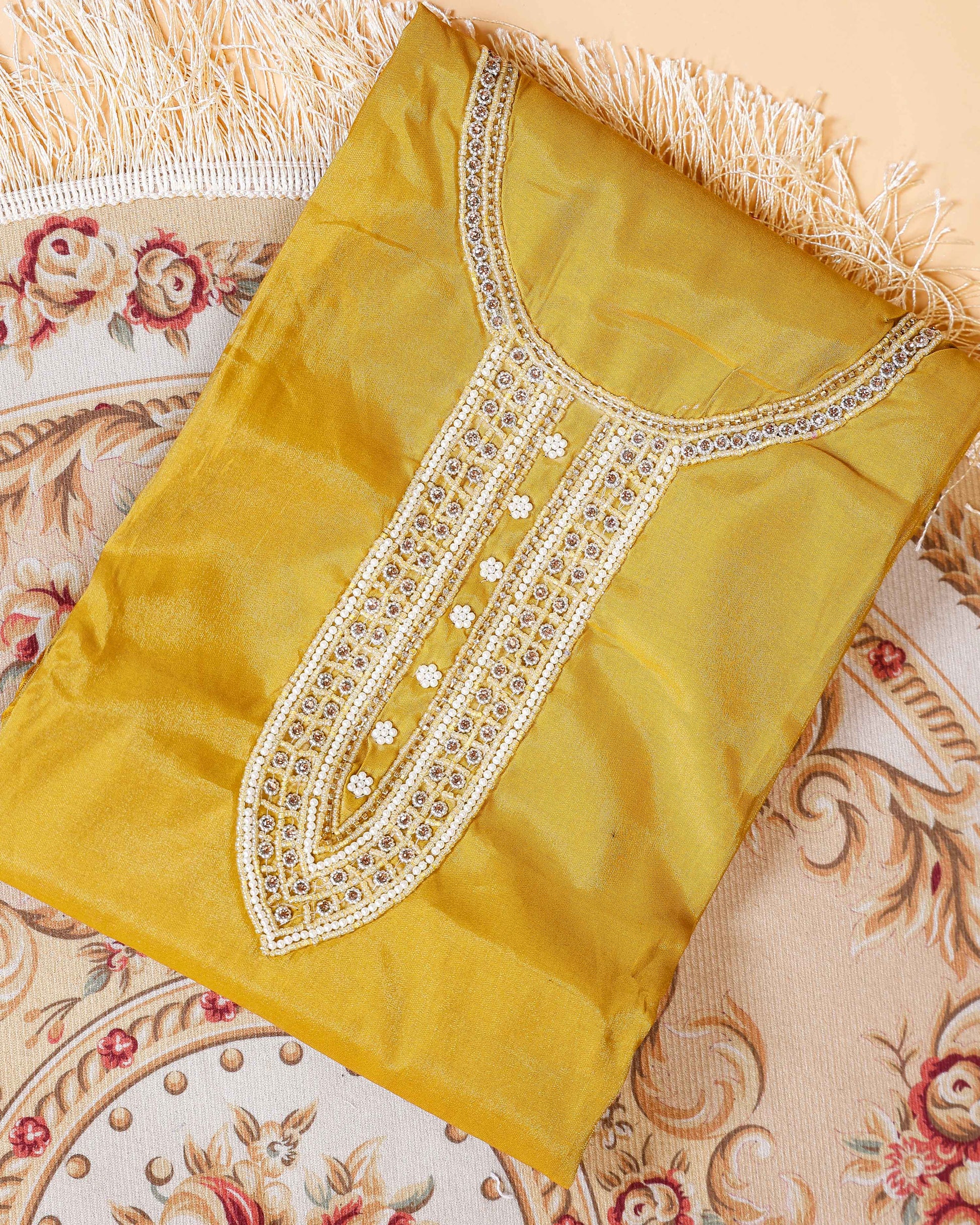 Women's Embroidered Salwar Material Set with Matching Bottom & Dupatta - Yellow