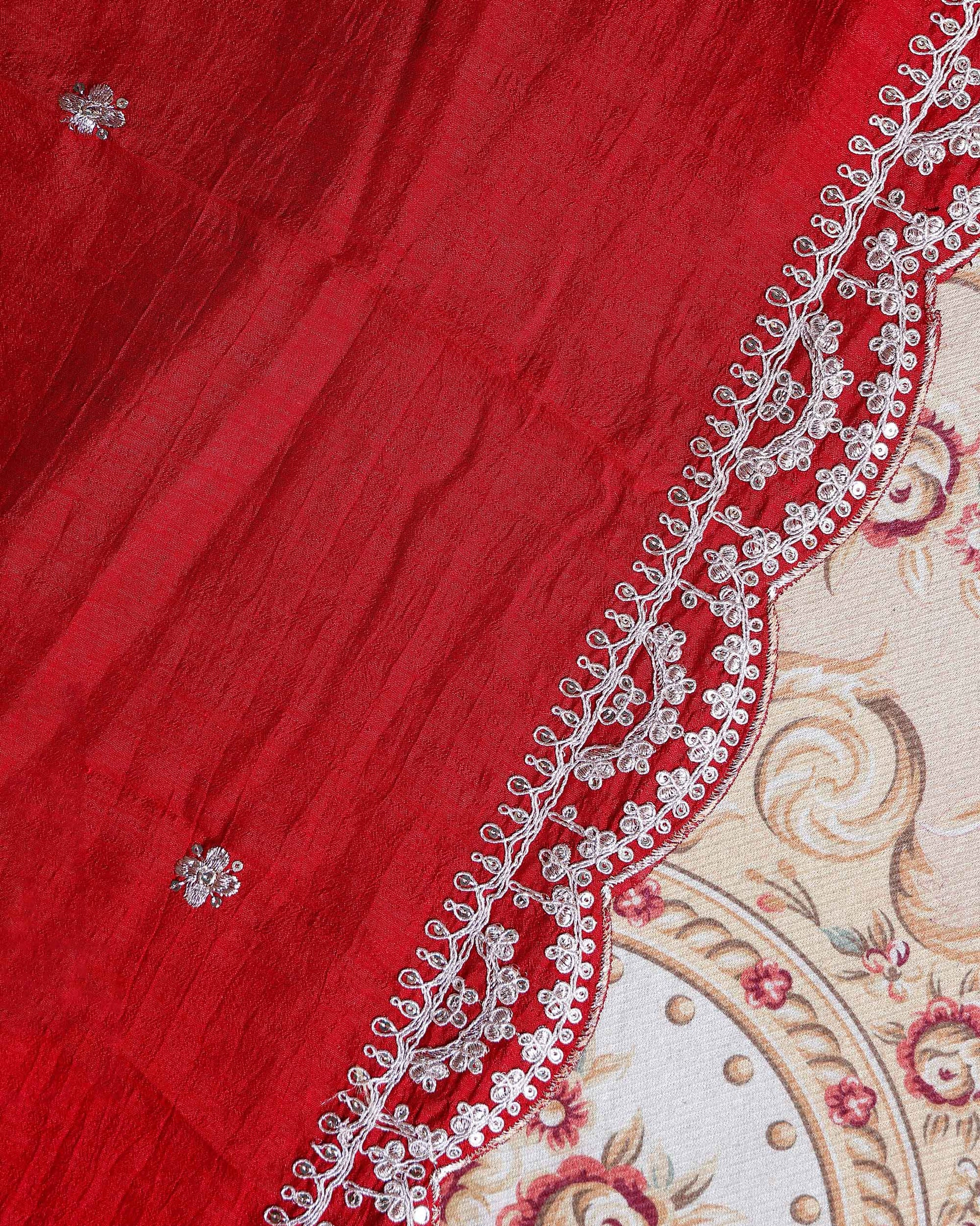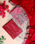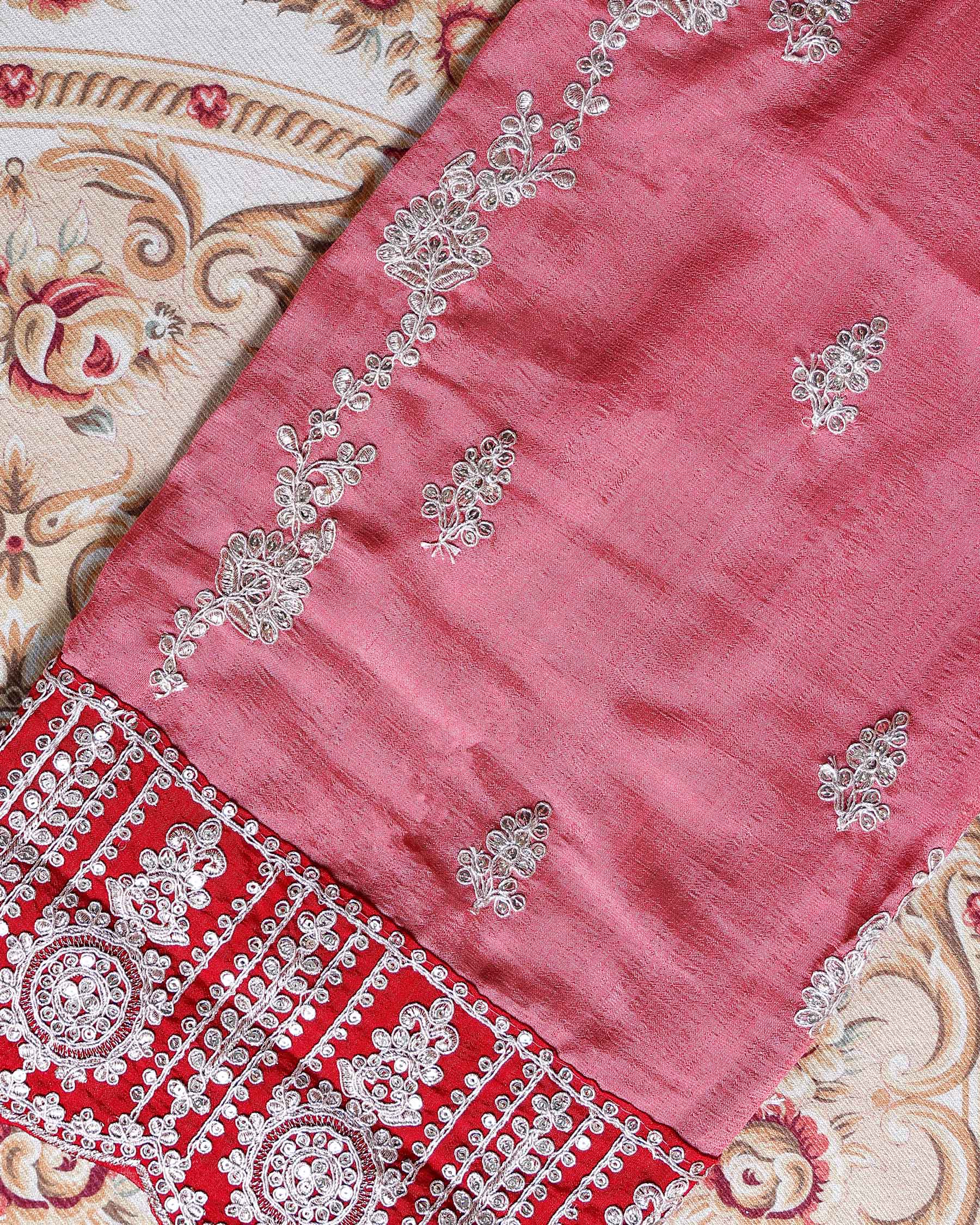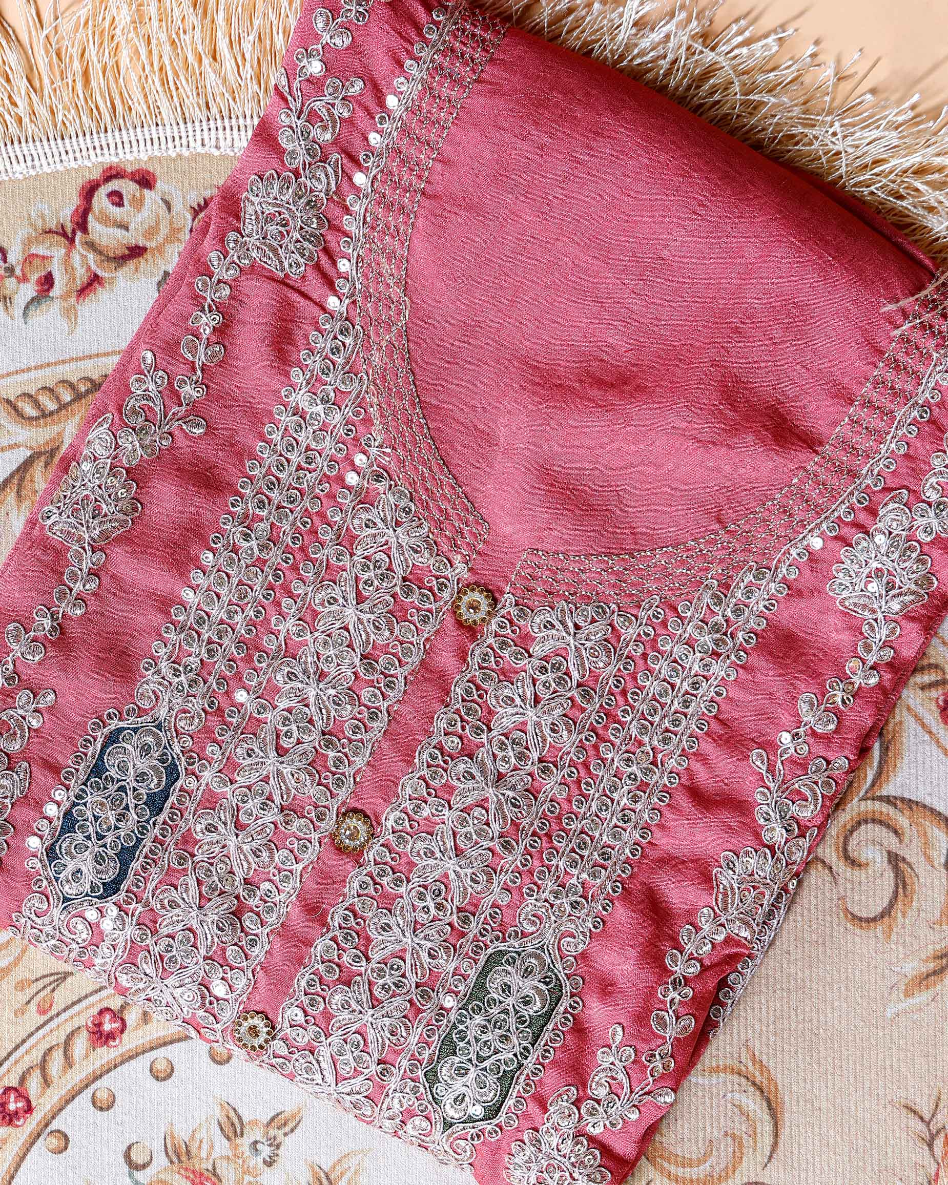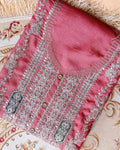 Women's Embroidered Unstitched Salwar Suit Material with Sequins and Scalloped Dupatta Border- Pink