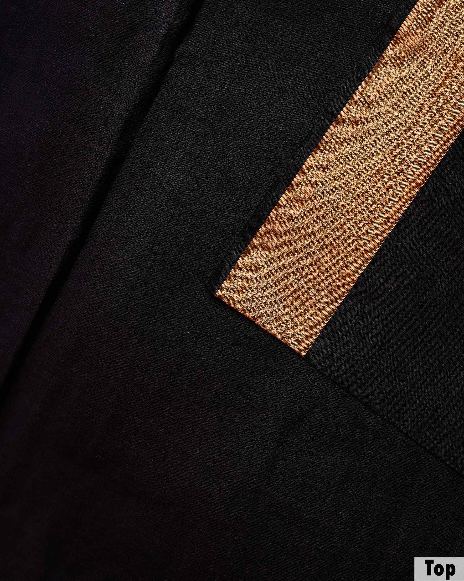 Women's Ethnic Cotton Handloom Unstitched Salwar Suit Set Top 2.5m, Pant 2m, Dupatta 2.25m with Zari Border - Black
