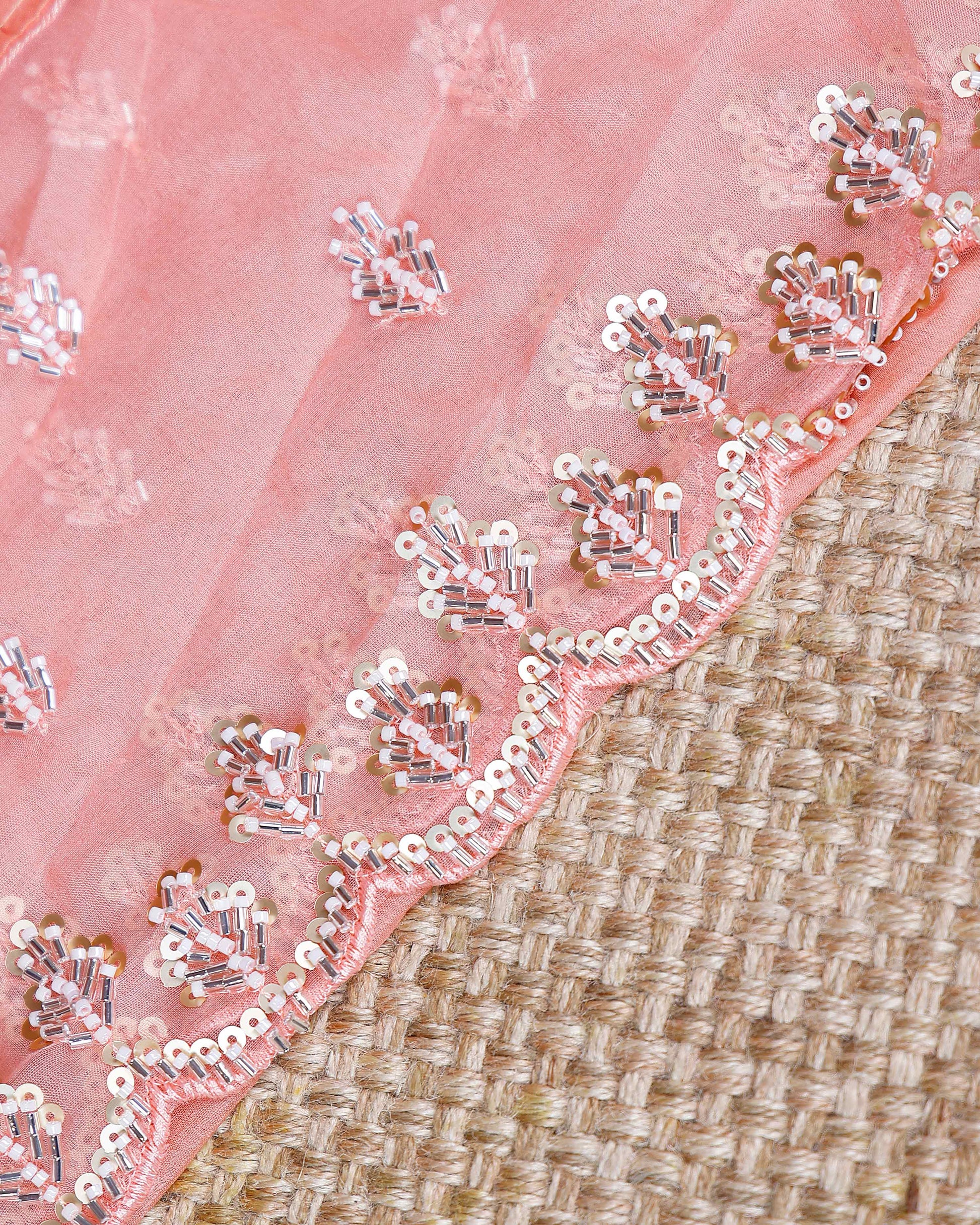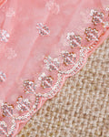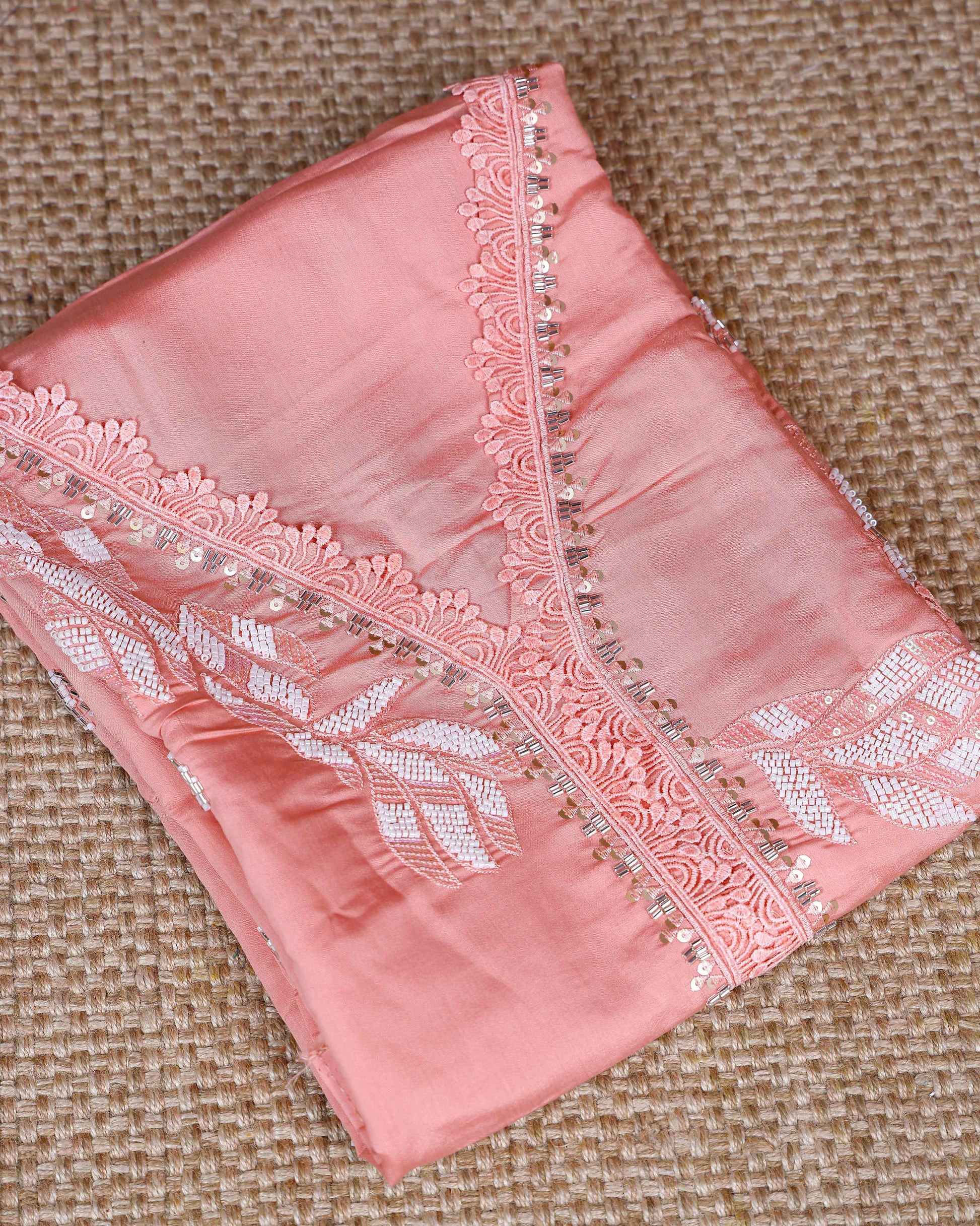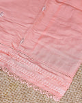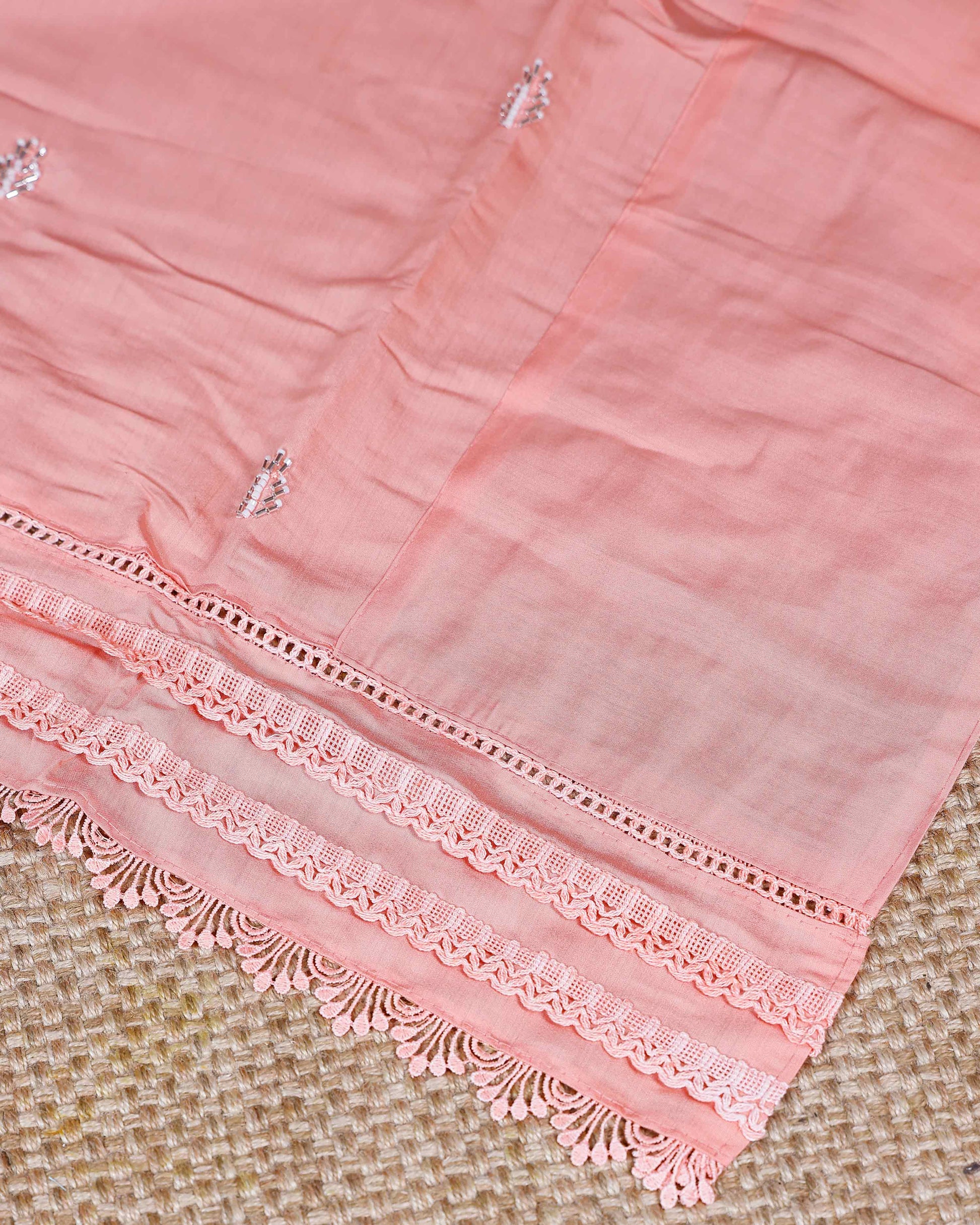 Women's Unstitched Salwar Material Set with Intricate Embroidered Neckline and Lightweight Dupatta - Peach