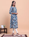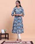 Women's Floral Printed A-Line Kurta with 3/4th Sleeves - Blue