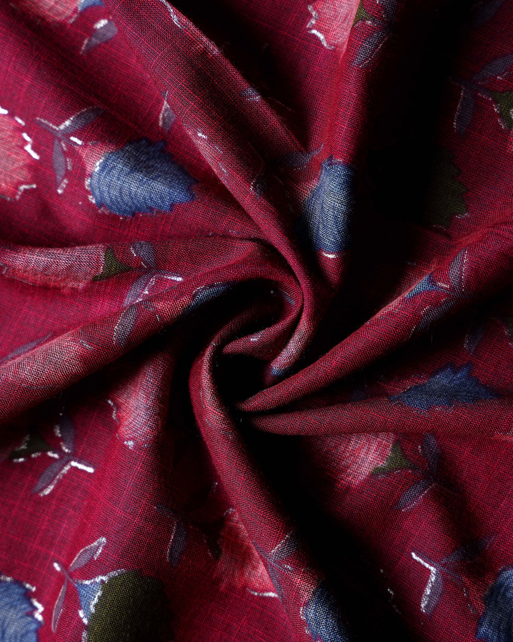 - This stunning maroon floral fabric is perfect for crafting a unique and stylish blouse
