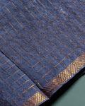 - Discover our stunning Blue textured blouse material elegant gold threads for a touch of luxury.