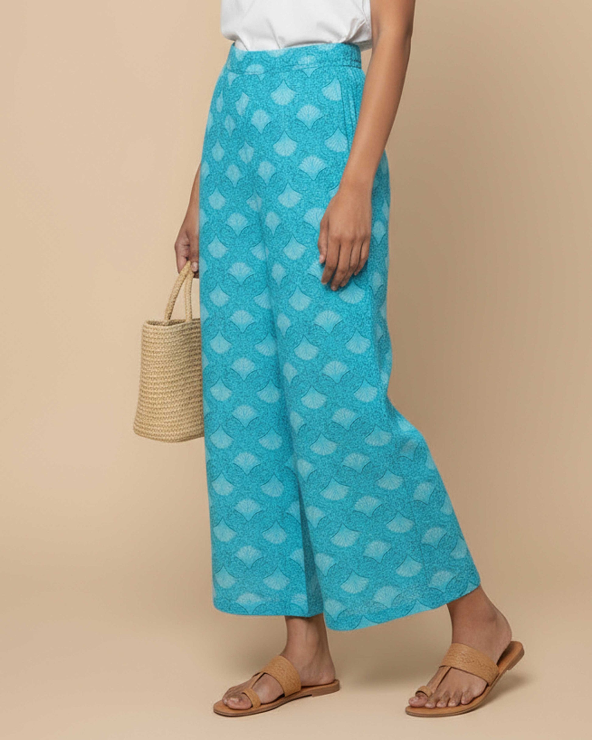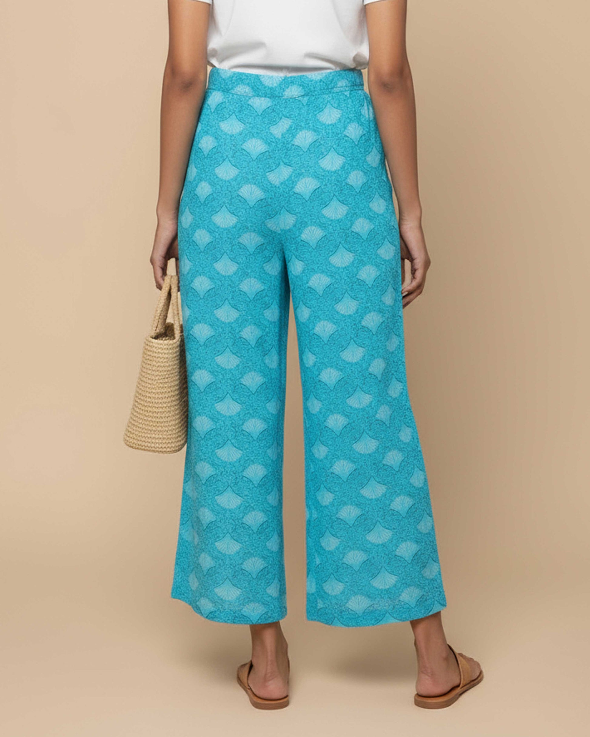 Women's Printed Wide-Leg Palazzo Pant with Elasticated Waistband - Blue