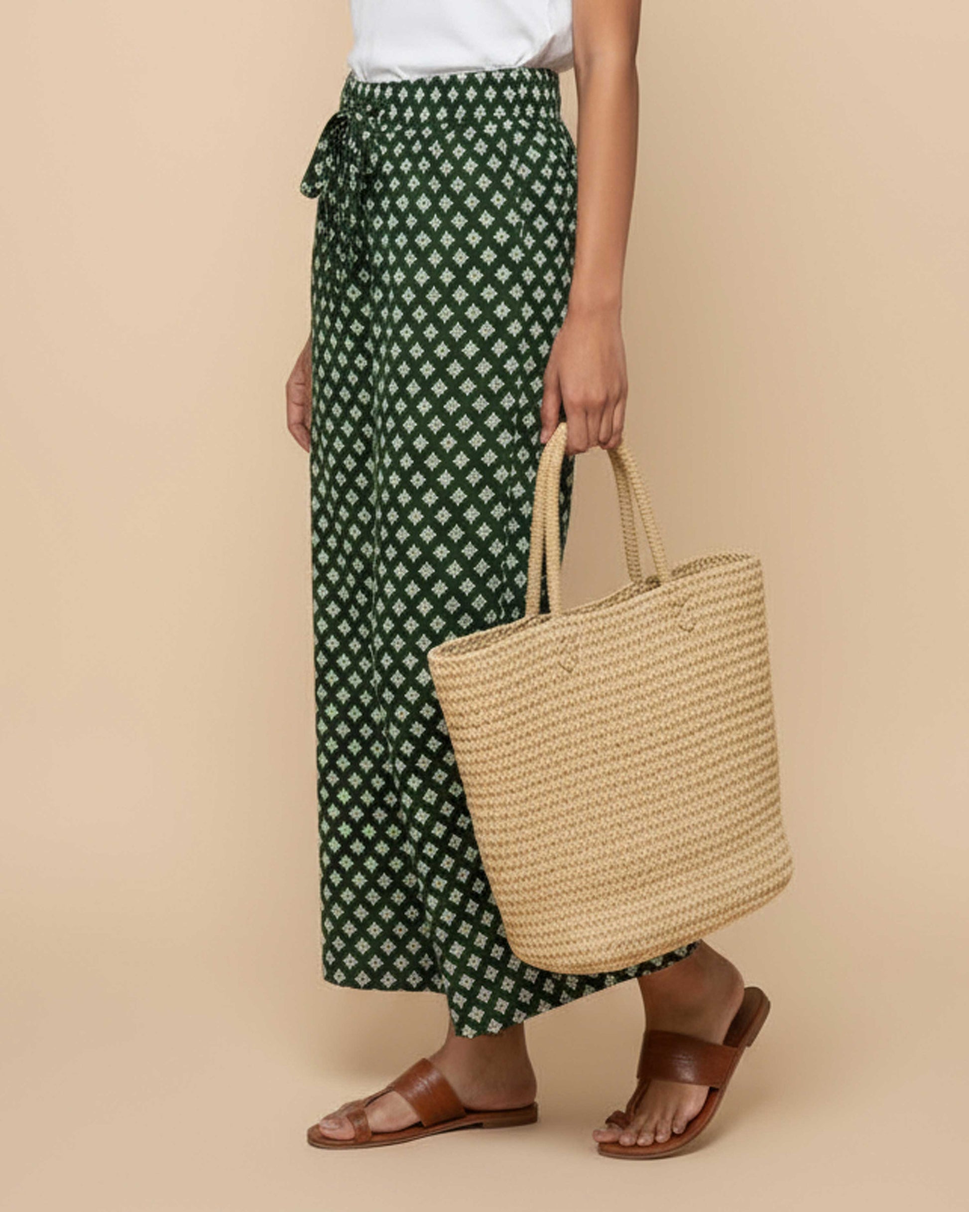 Women's Printed Wide-Leg Palazzo Pant with Elasticated Waistband - Green