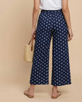 Women's Printed Wide-Leg Palazzo Pant with Elasticated Waistband - Navy Blue