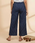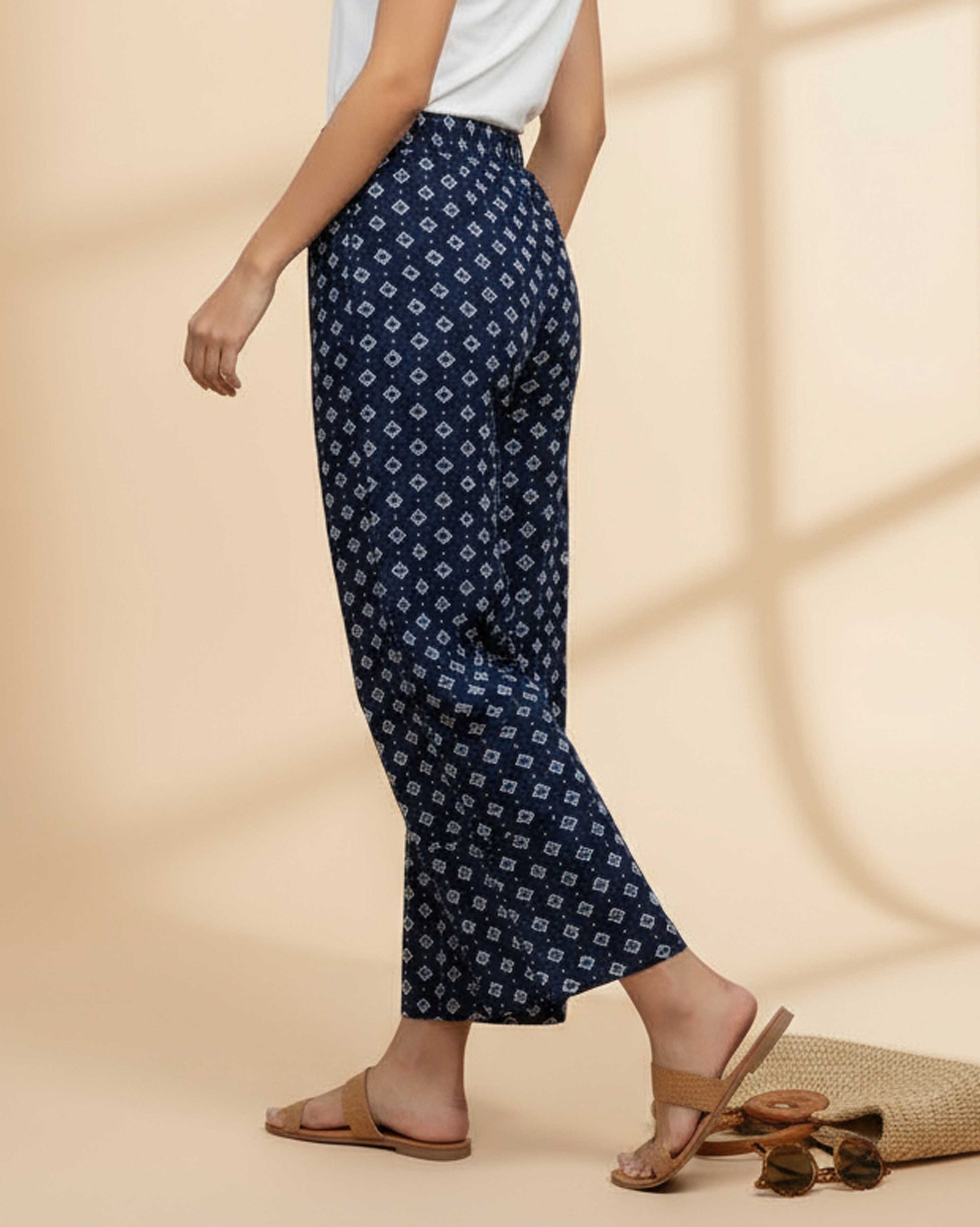 Women's Printed Wide-Leg Palazzo Pant with Elasticated Waistband -Navy Blue