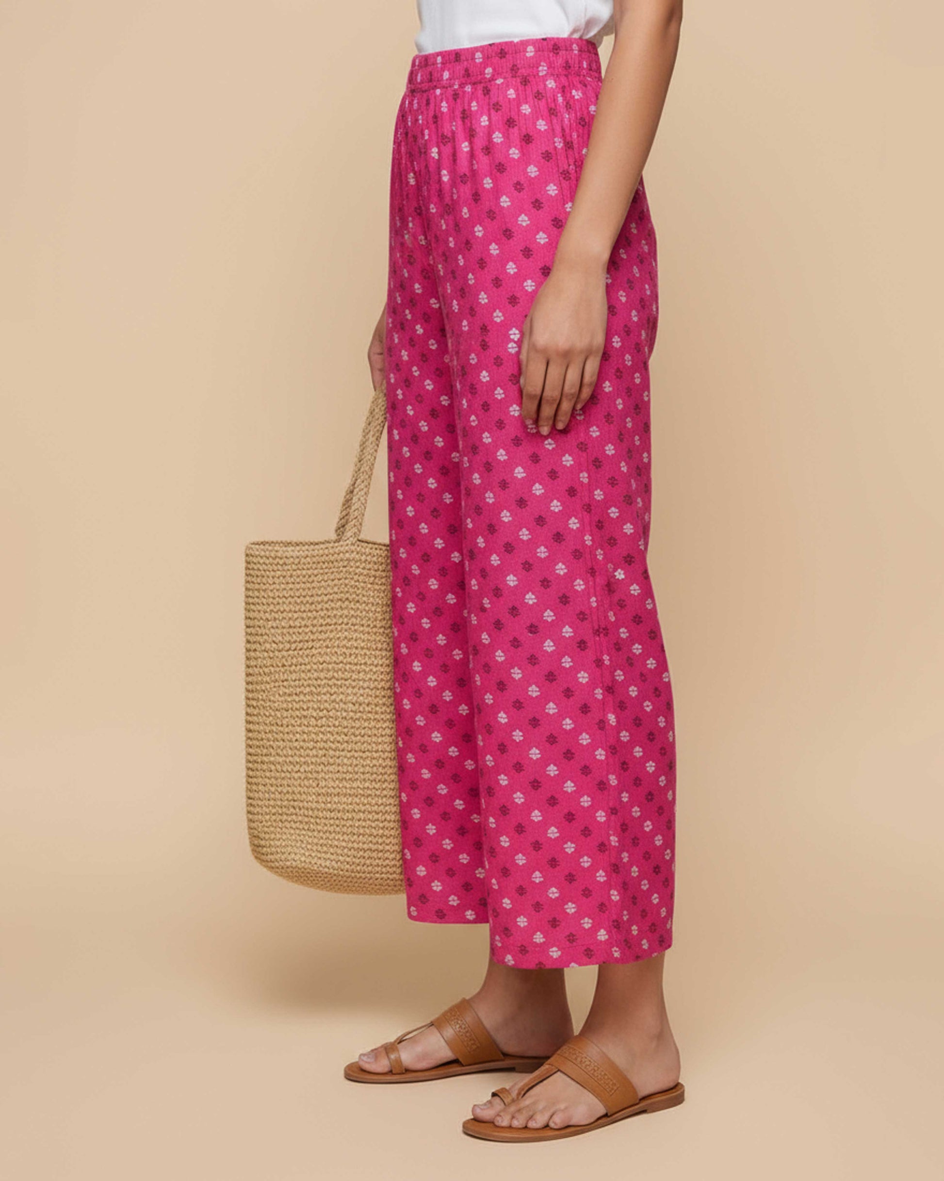 Women's Printed Wide-Leg Palazzo Pant with Elasticated Waistband - Pink