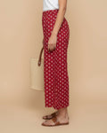 Women's Printed Wide-Leg Palazzo Pant with Elasticated Waistband -Red