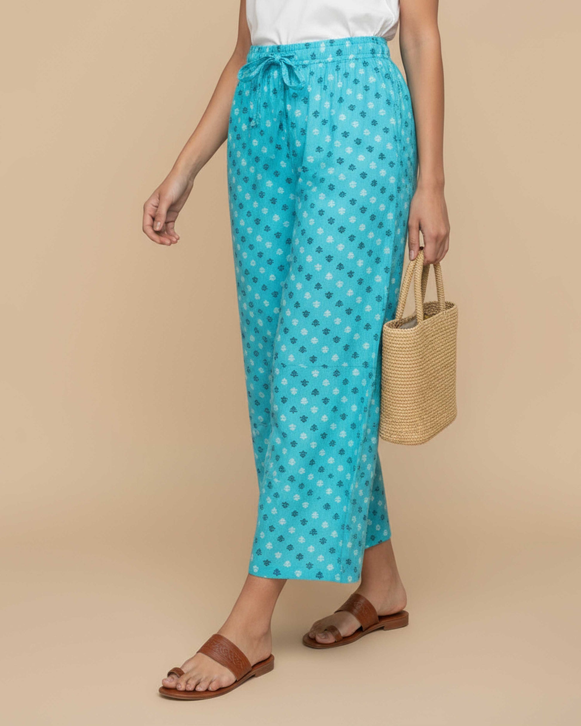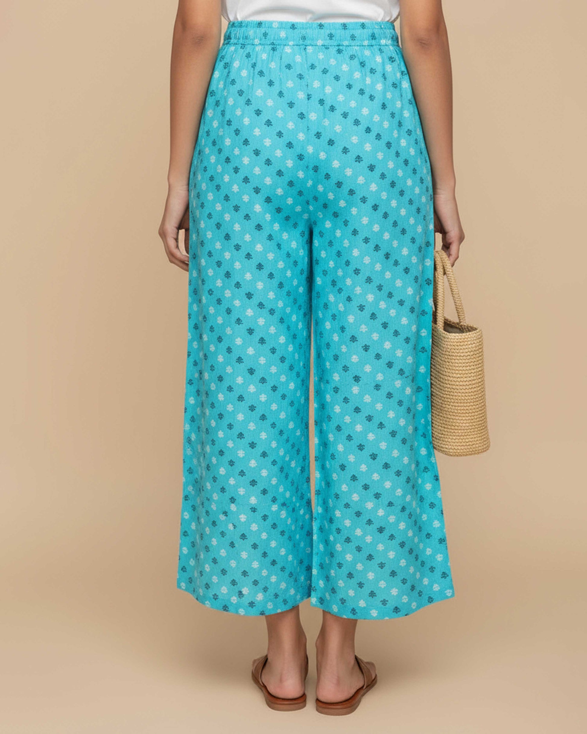 Women's Printed Wide-Leg Palazzo Pant with Elasticated Waistband - Sky Blue