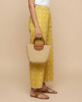 Women's Printed Wide-Leg Palazzo Pant with Elasticated Waistband - Yellow