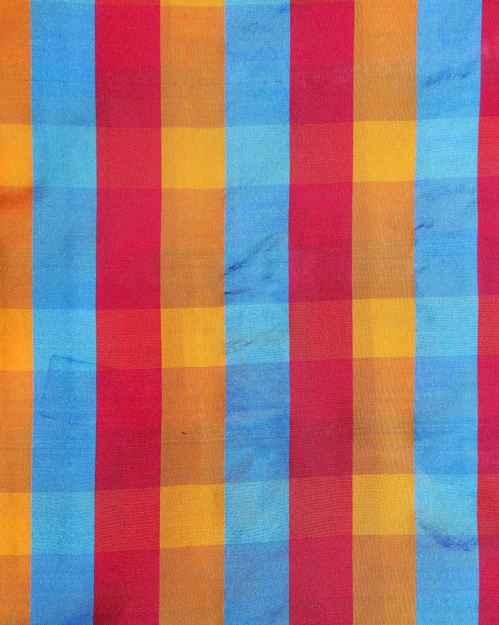 - This is a vibrant multi colored checked Semi Silk fabric often referred to as a classic heritage design.