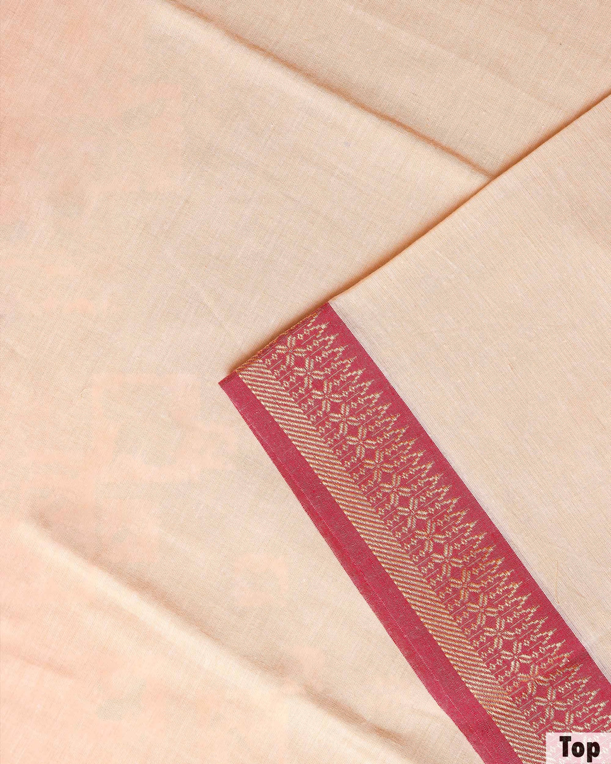 Women's Traditional Cotton Handloom Unstitched Salwar Suit Set Top 2.5m, Pant 2m, Dupatta 2.25m with Woven Red Border - Beige