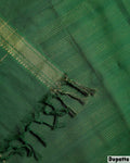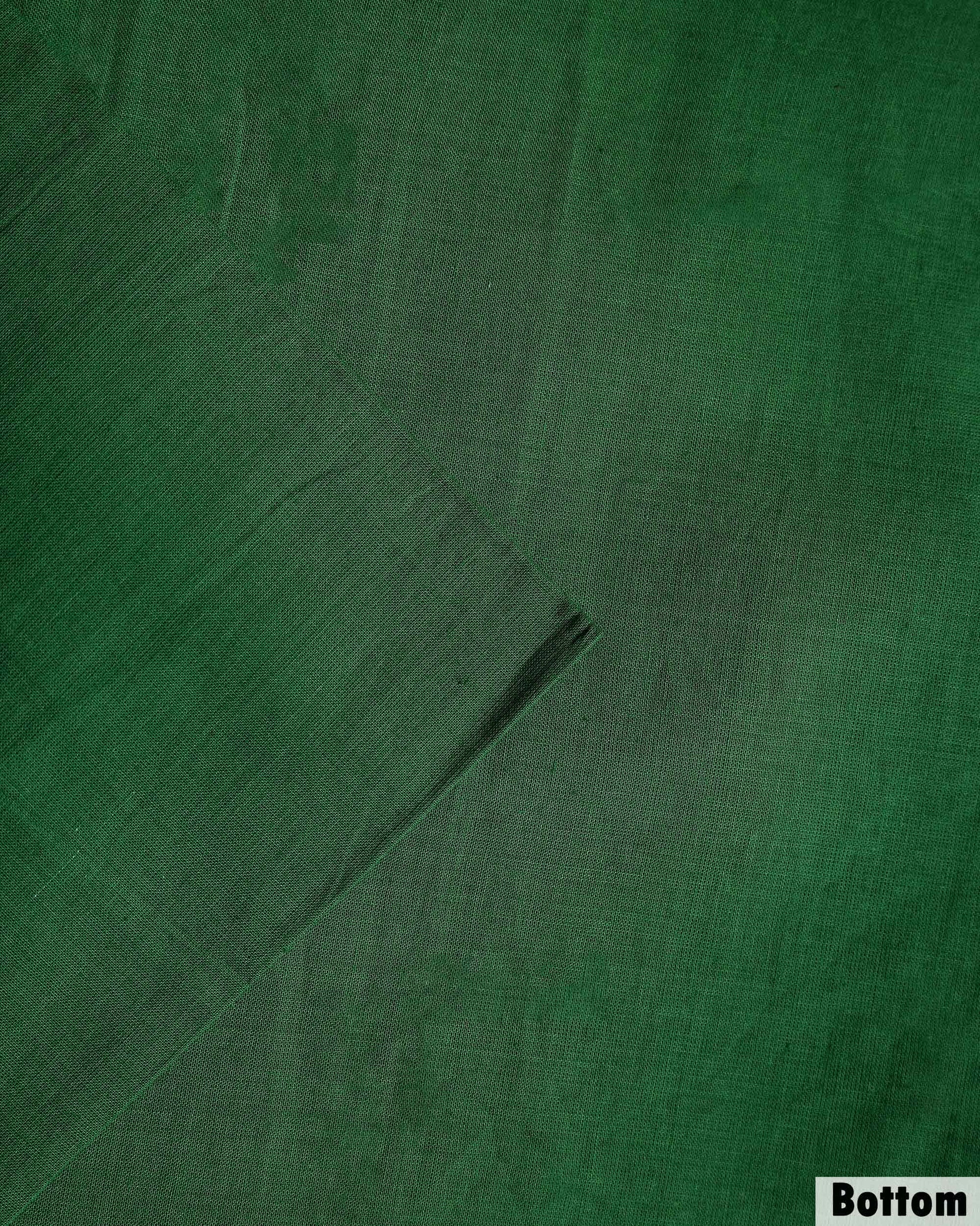 Women's Traditional Cotton Handloom Unstitched Salwar Suit Set Top 2.5m, Pant 2m, Dupatta 2.25m with Woven Zari Border - Dark Green