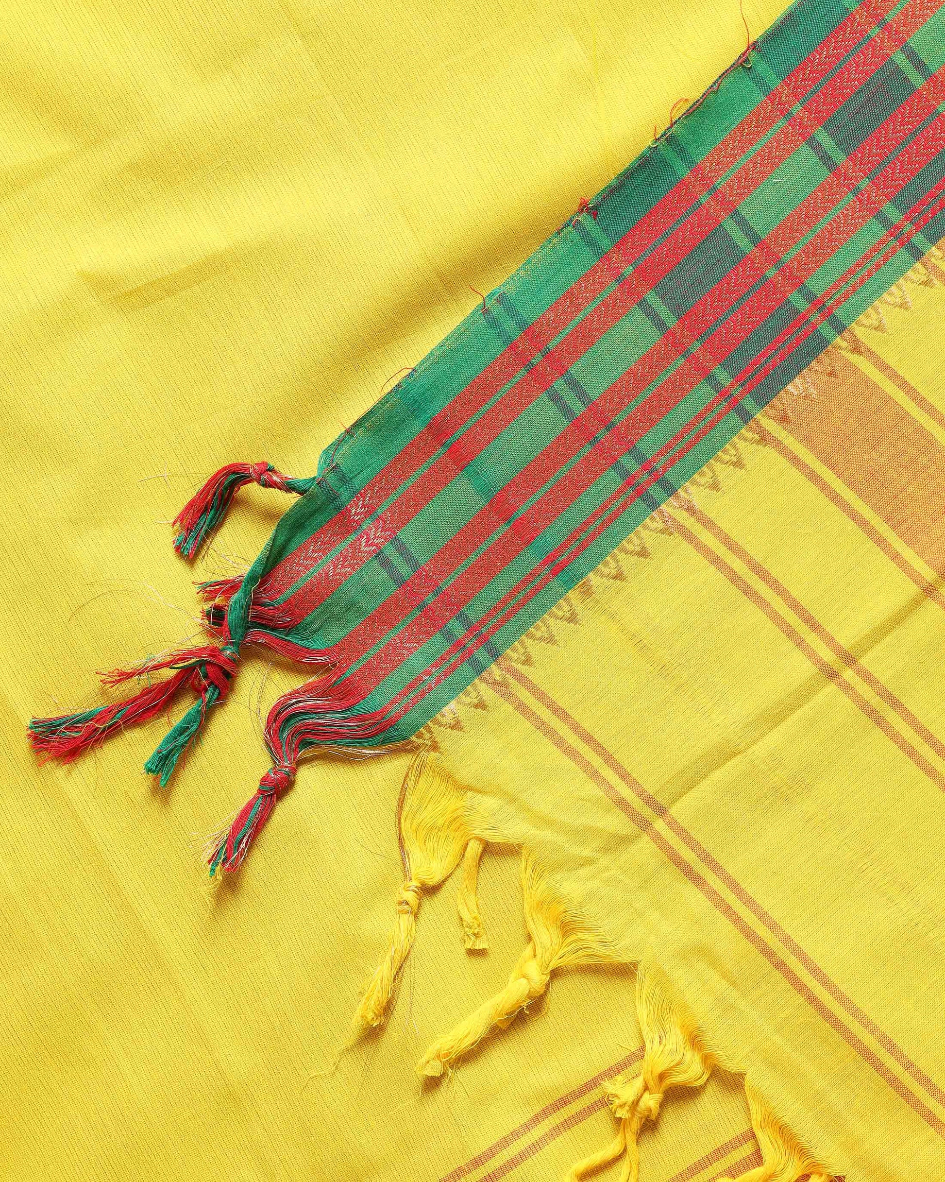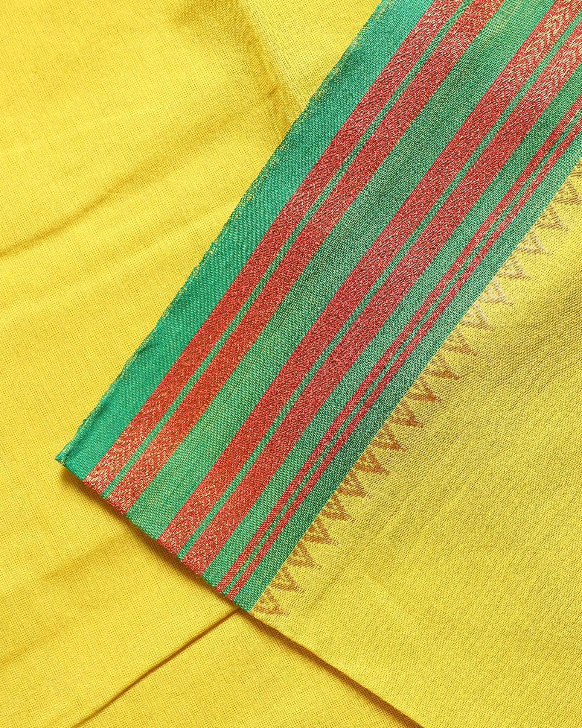 Women's Traditional Mangalagiri Cotton Salwar Material - Top 2.5m, Pant 2m, Dupatta 2.25m with Zari Border - Yellow