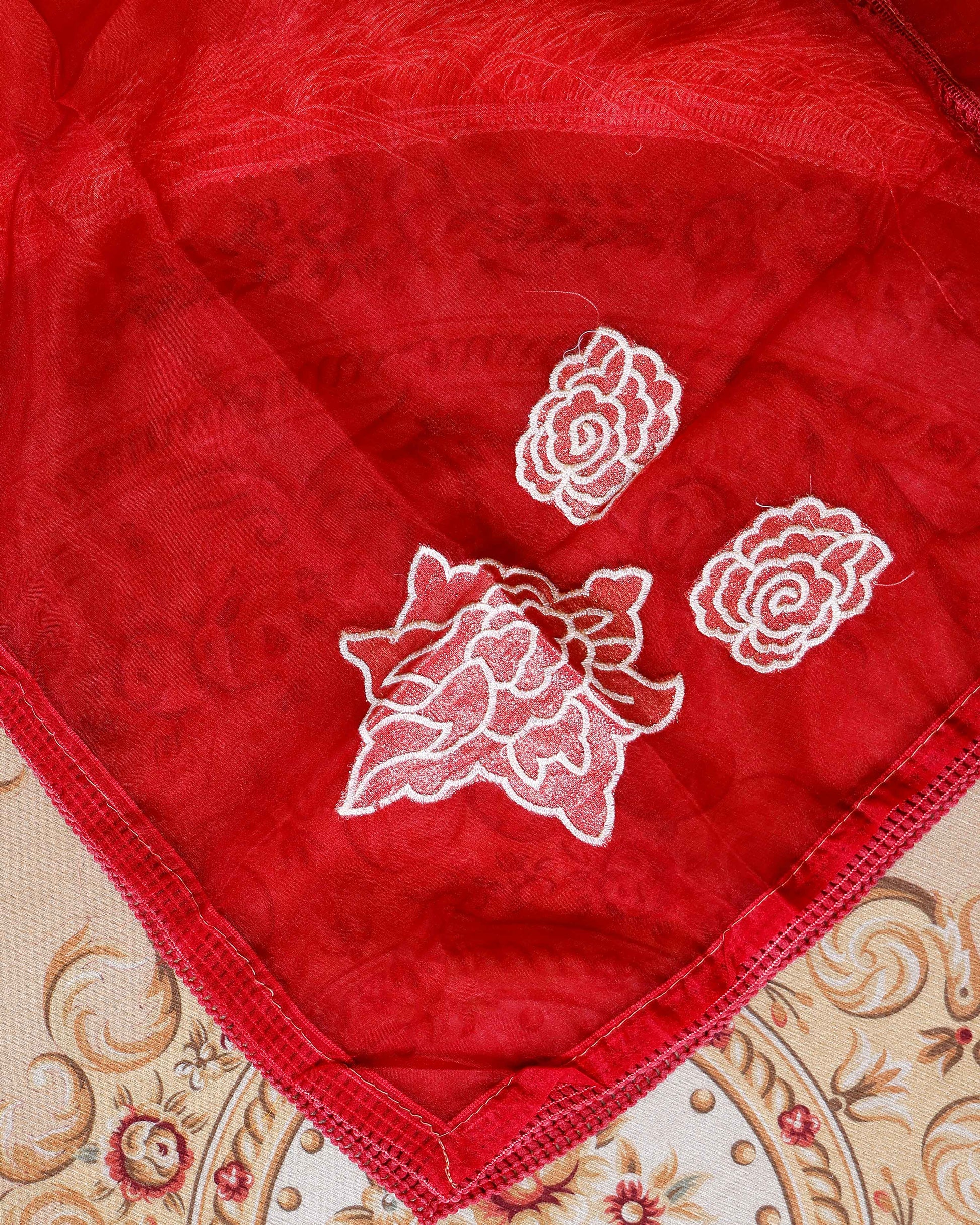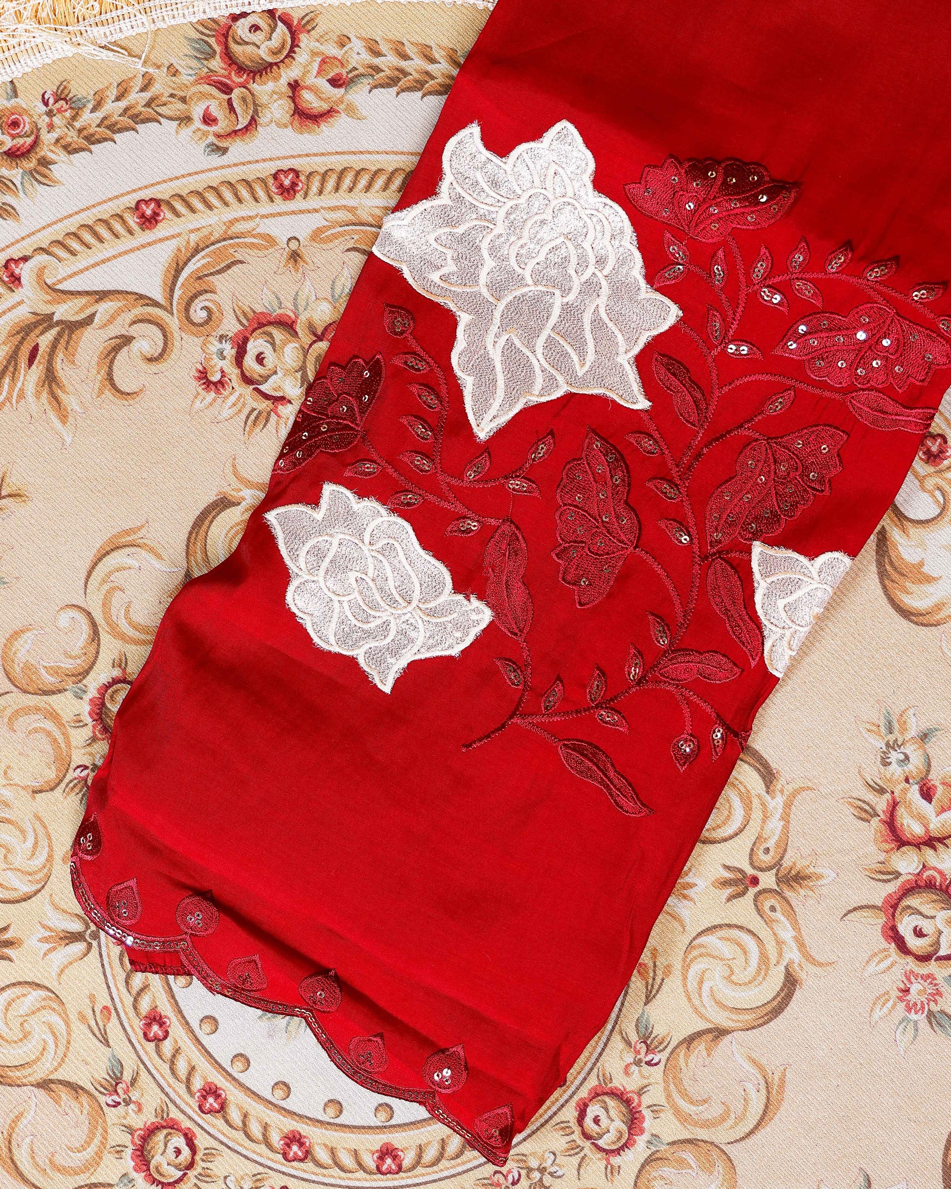 Women's Embroidered Floral Motif Salwar Suit Material with Dupatta - Red