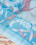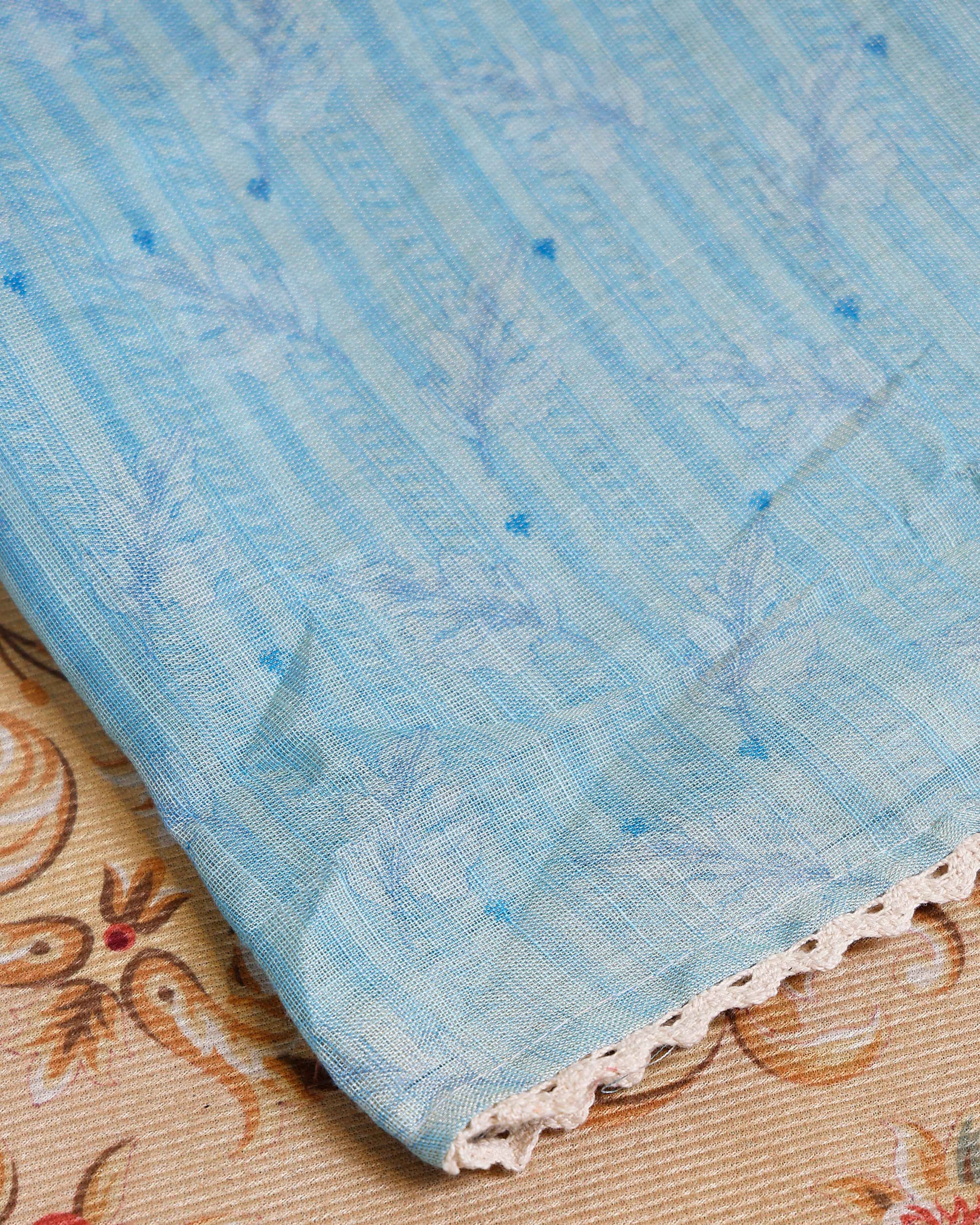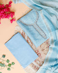 Women's Embroidered Neckline Unstitched Salwar Suit Material with Dupatta - Blue