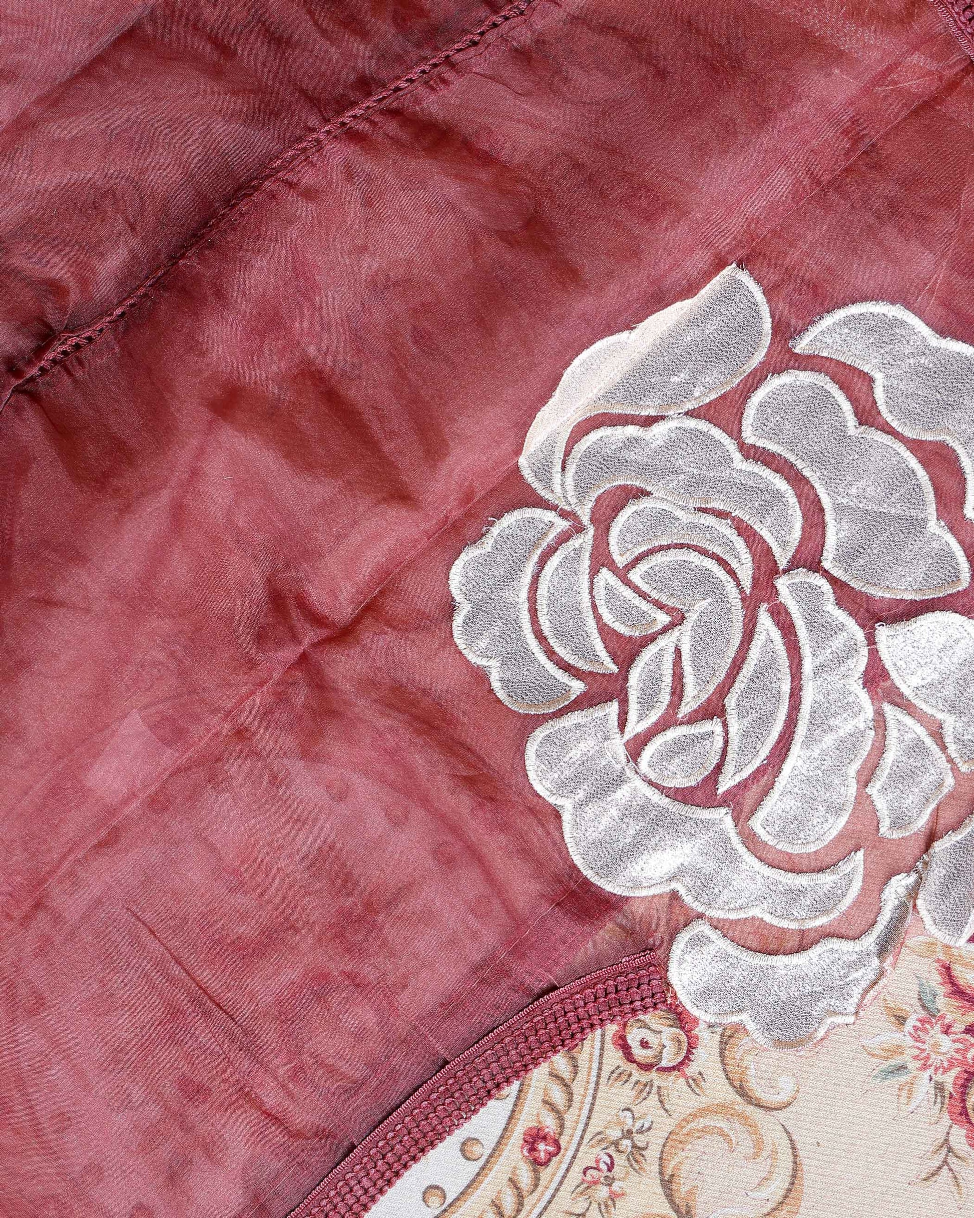 Women's Elegant Unstitched Salwar Suit Material with Embellished Neckline & Printed Dupatta - Maroon