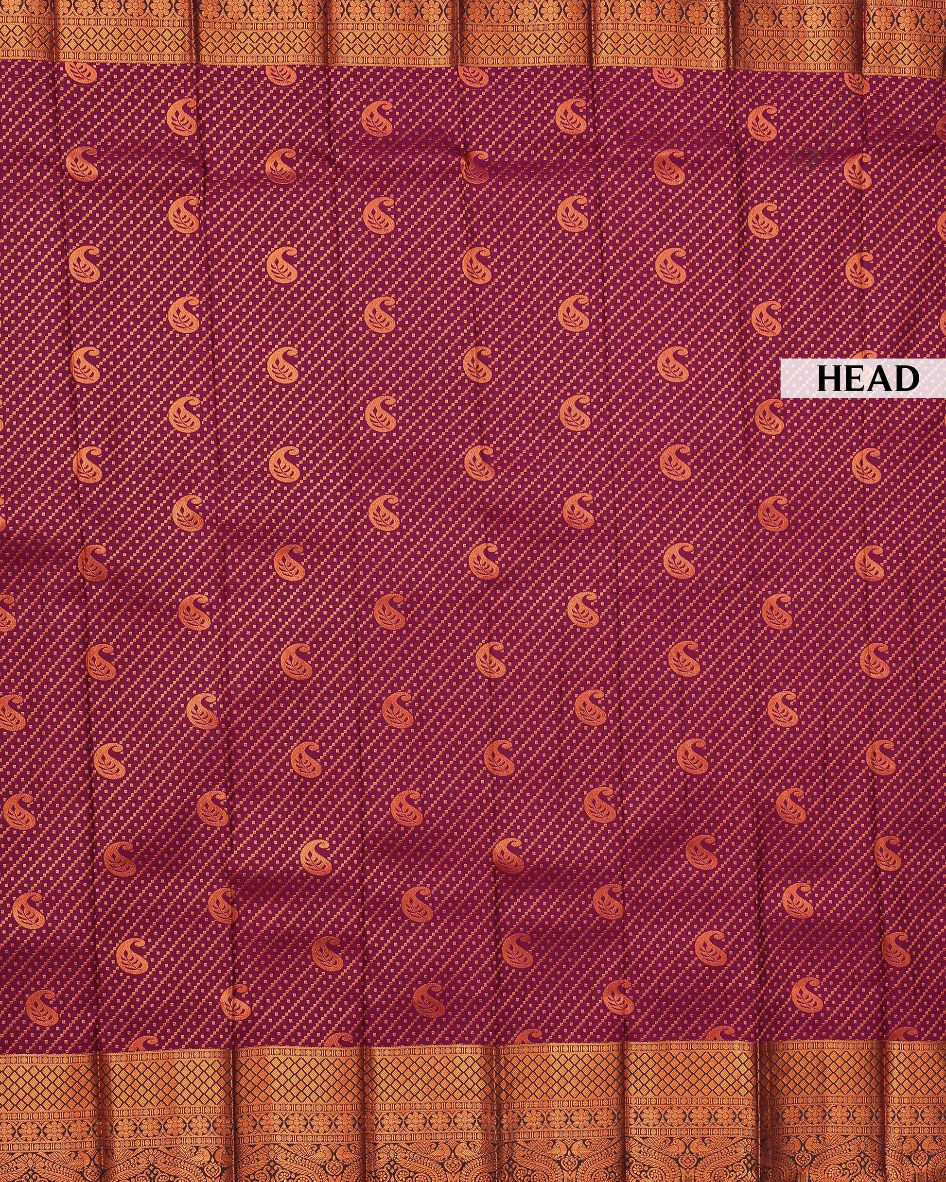 - Elevate your wardrobe with this exquisite purple premium silk saree, a rich gold zari border and intricate peacock motifs on the pallu.