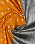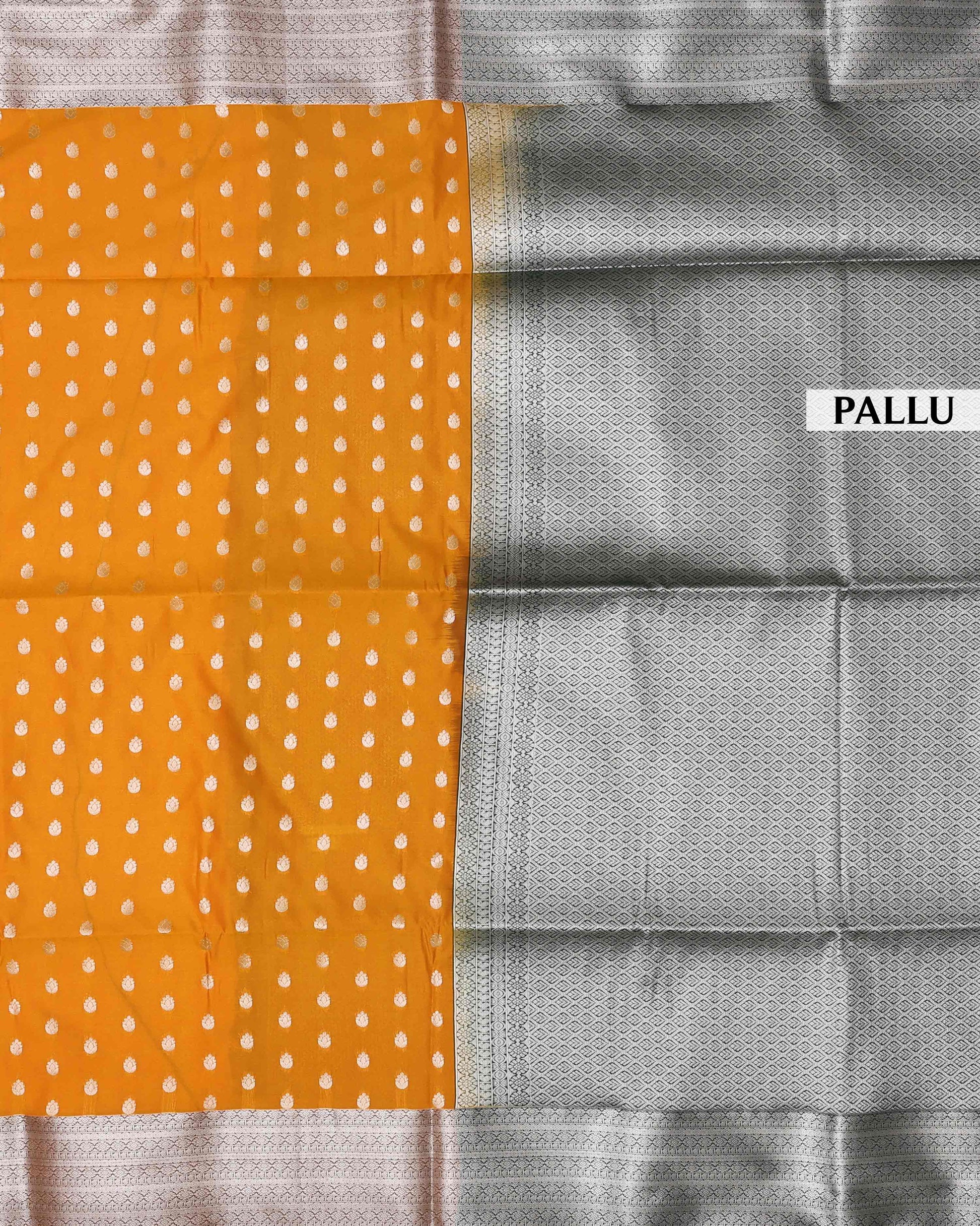 - This elegant mustard soft silk saree delicate silver polka dot motifs, making it a perfect choice for festive occasions and celebrations.