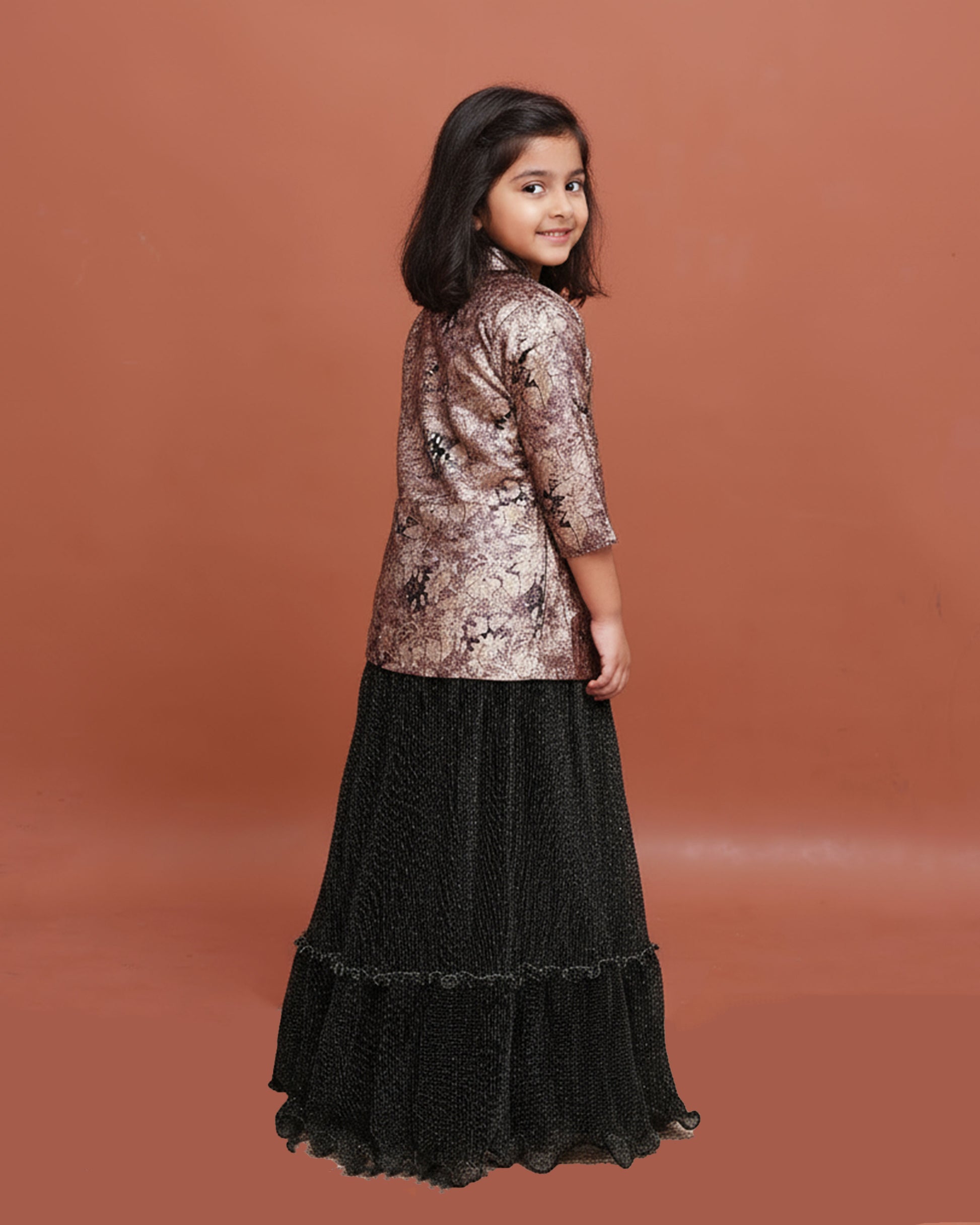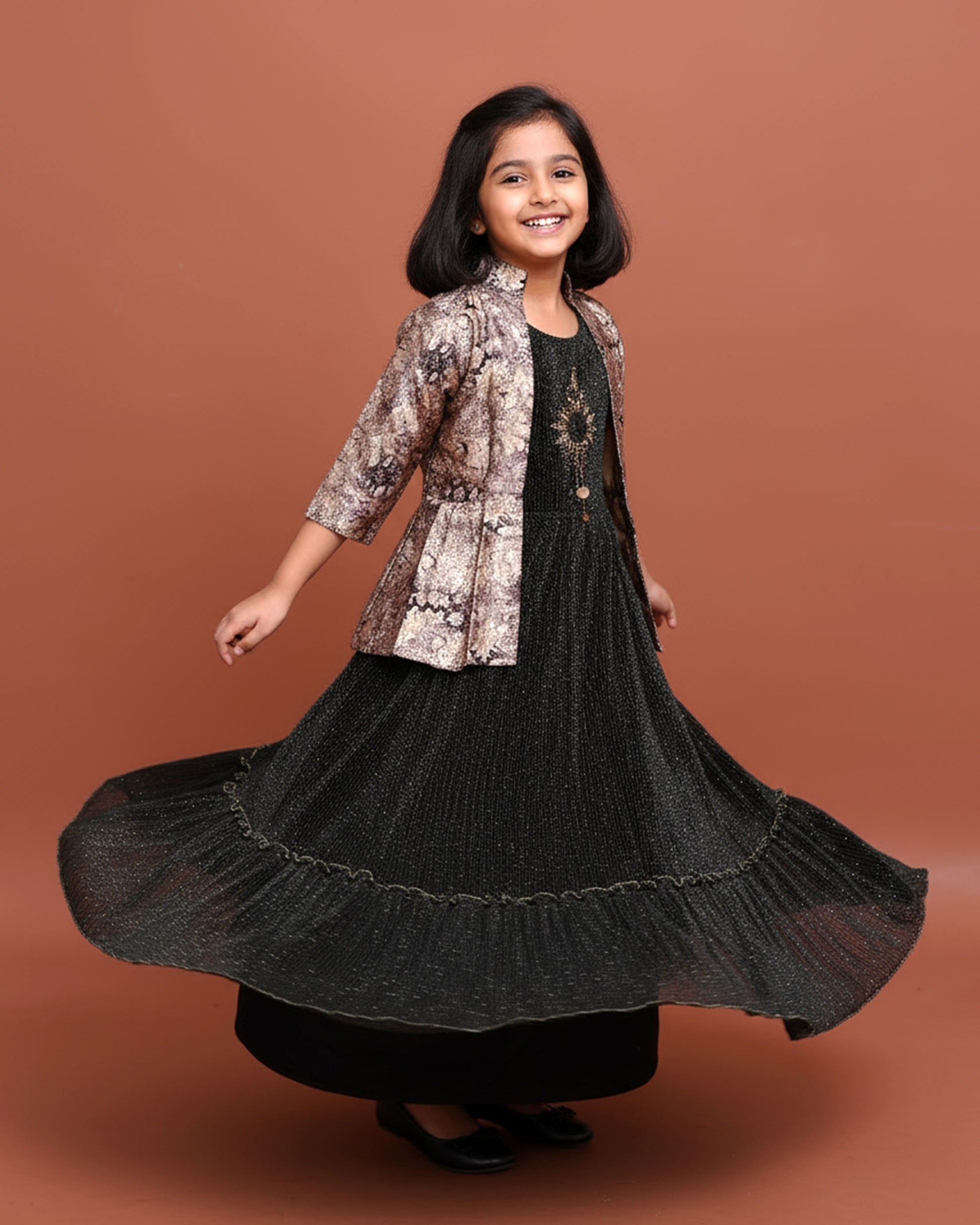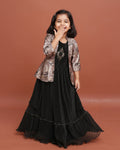 Girls Elegant Layered Gown with Embroidered Jacket and Ruffled - Multi