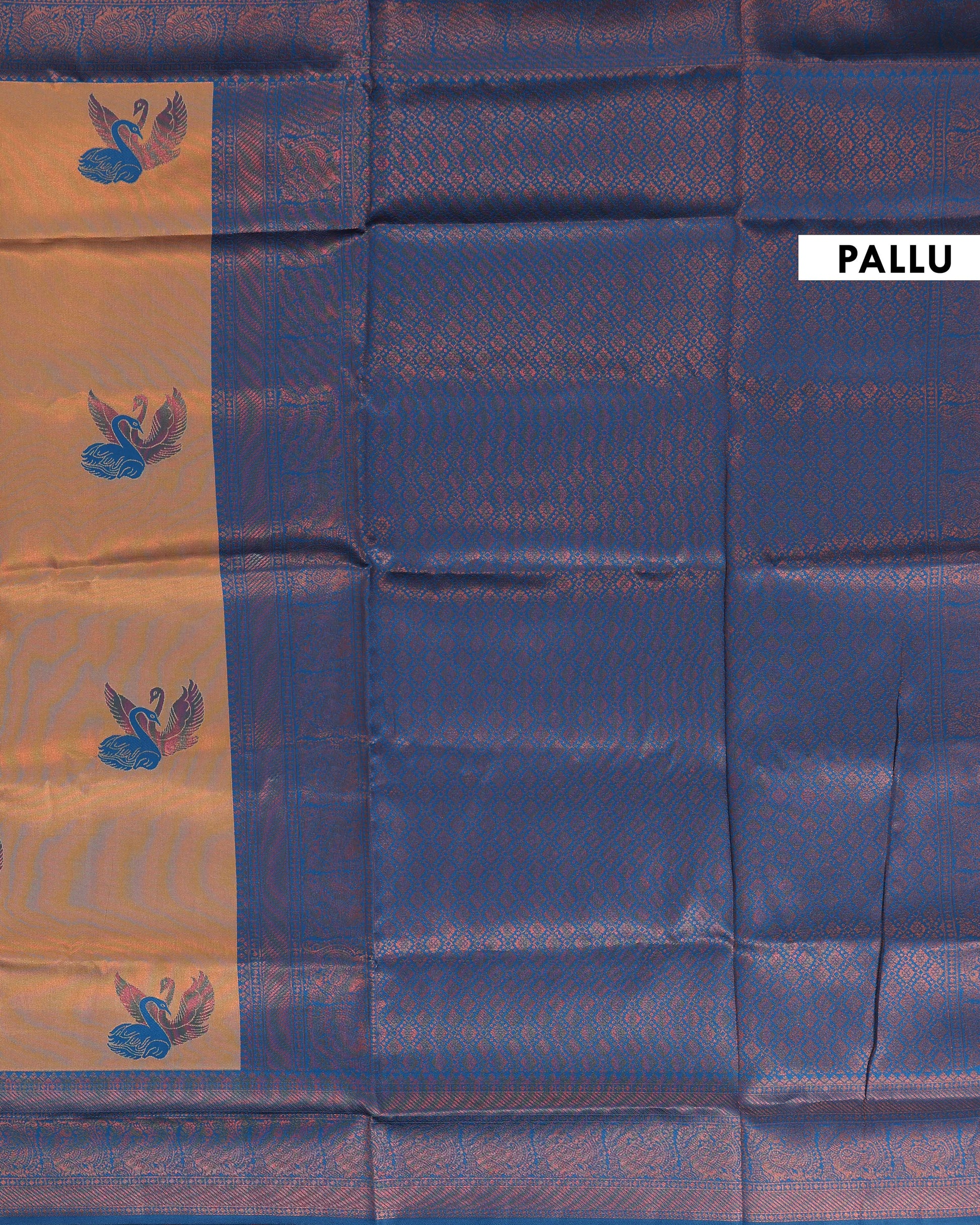 - Elevate your traditional wardrobe with this exquisite litchi silk saree, a soft peach body that exudes timeless elegance
